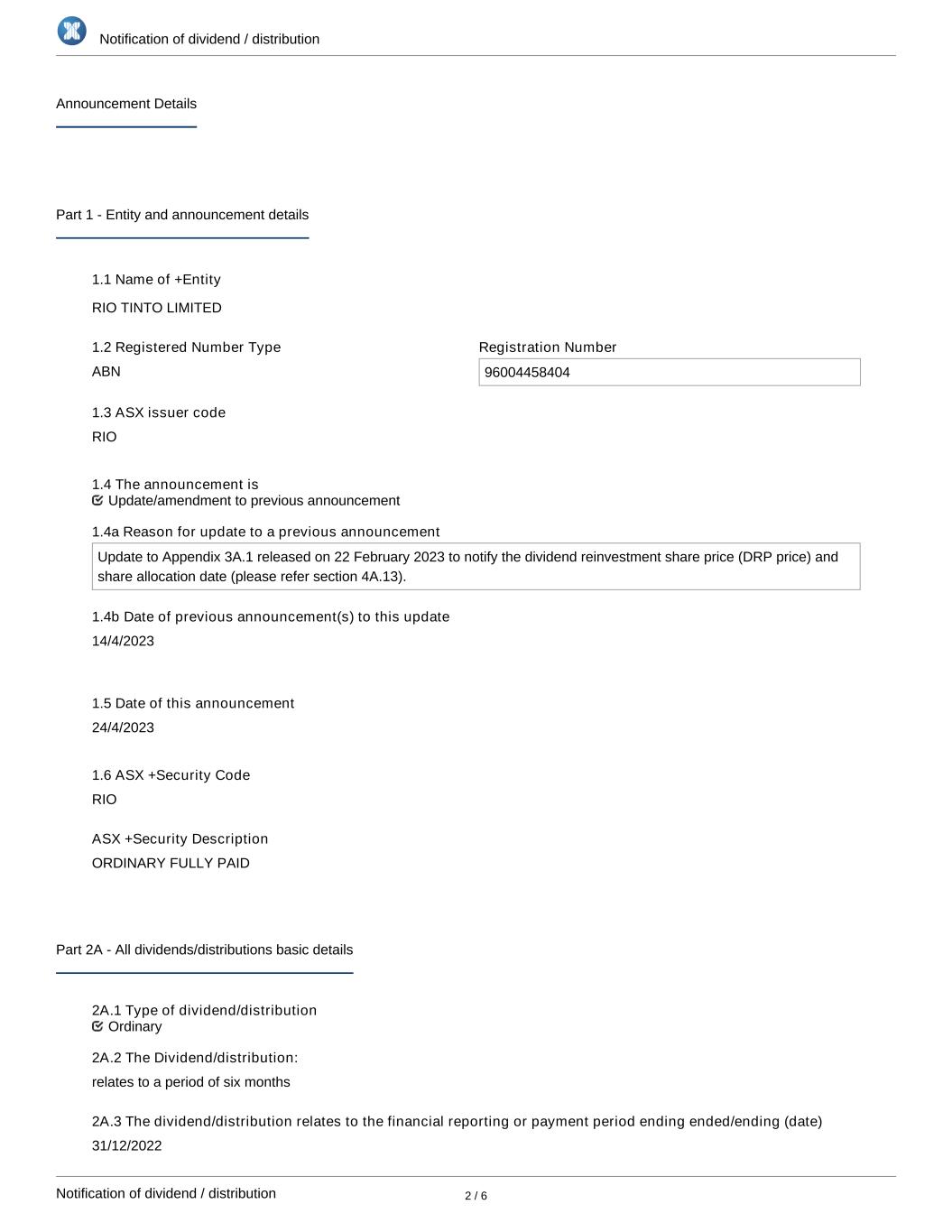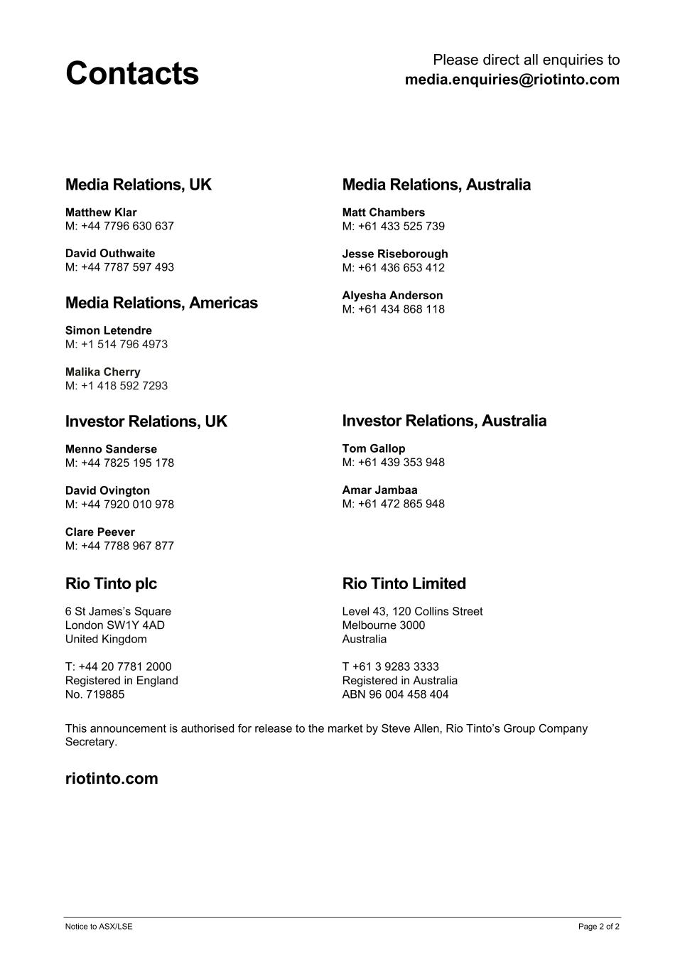 | Rio Tinto plc | Rio Tinto Limited | ||||