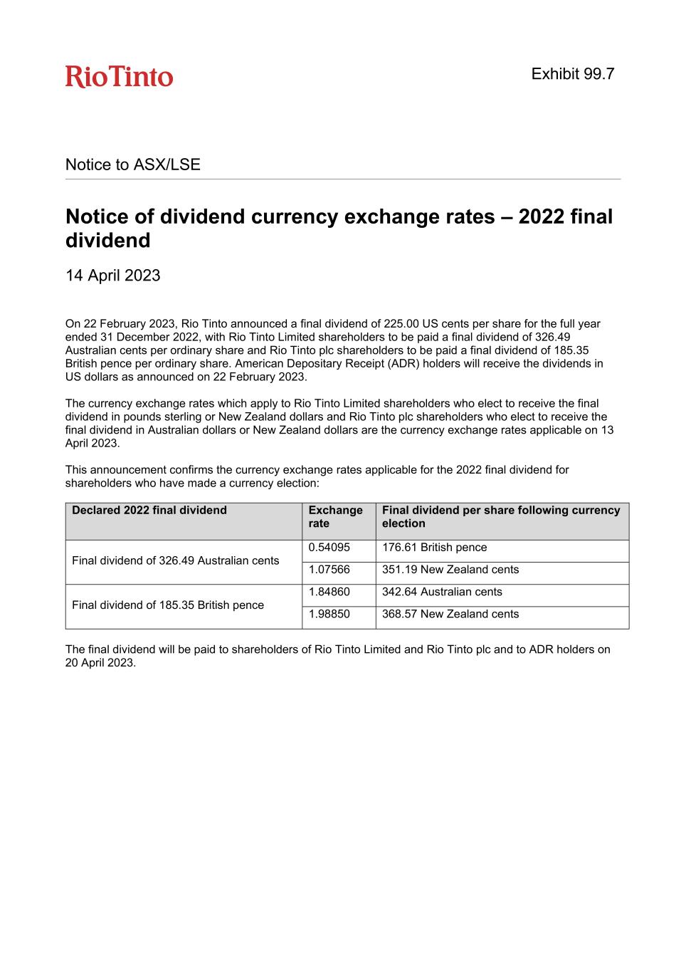 | Rio Tinto plc | Rio Tinto Limited | ||||||||||
