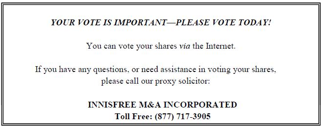 Recommend TA Shareholders Vote “FOR” Pending BP Transaction
