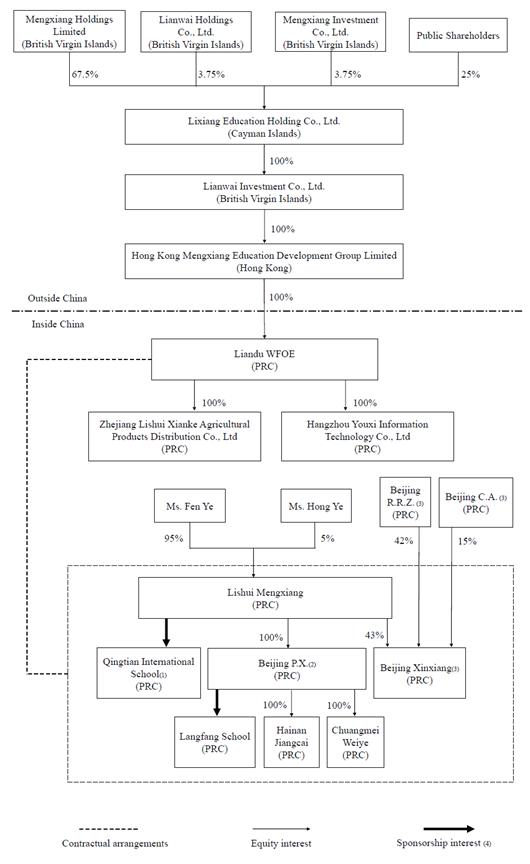| ● | “Lishui Mengxiang” refers to Zhejiang Lishui Mengxiang Education Development Co., Ltd. (浙江丽水梦翔教育发展有限公司), a company incorporated under the laws of the PRC and the sponsor of Qingtian International School; |