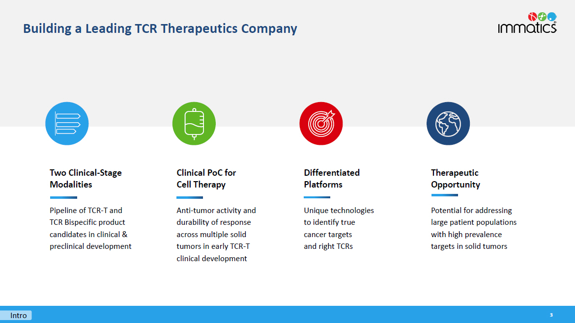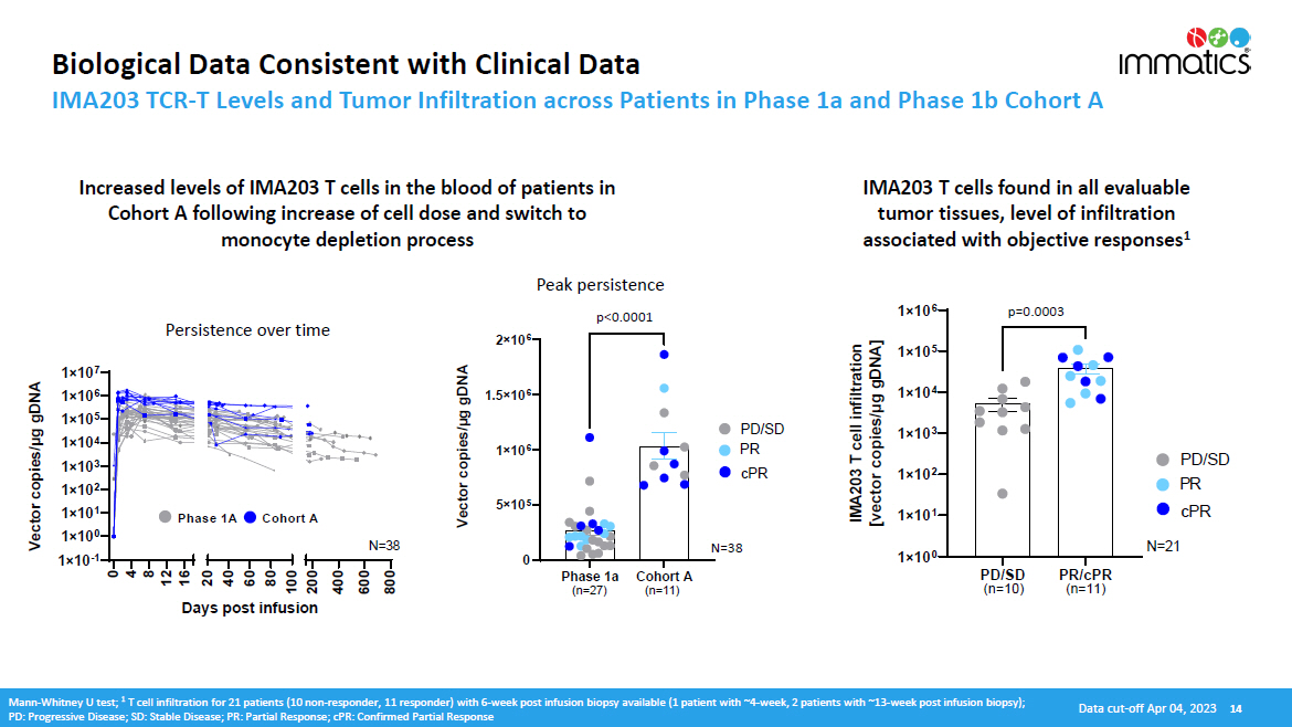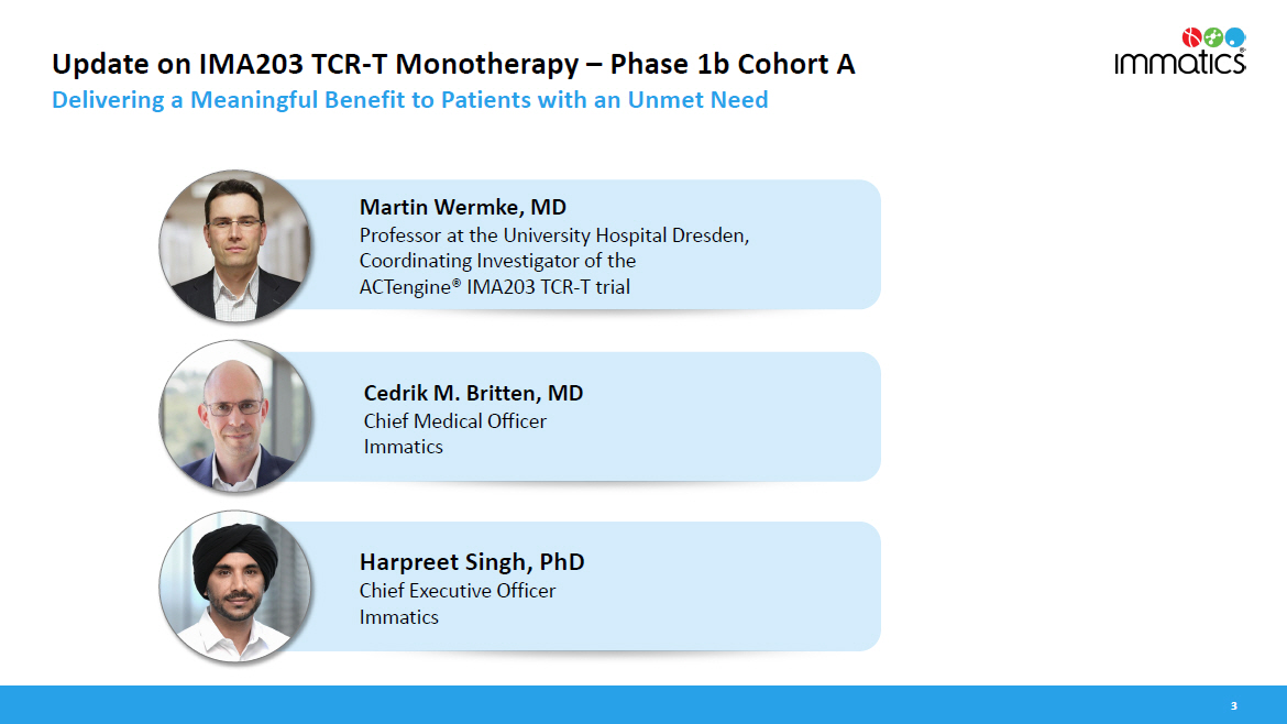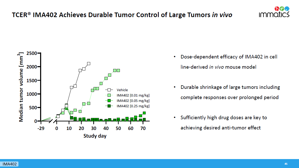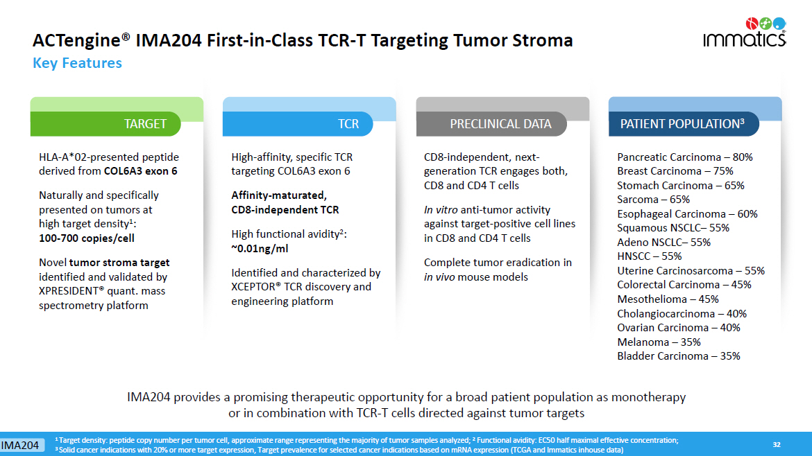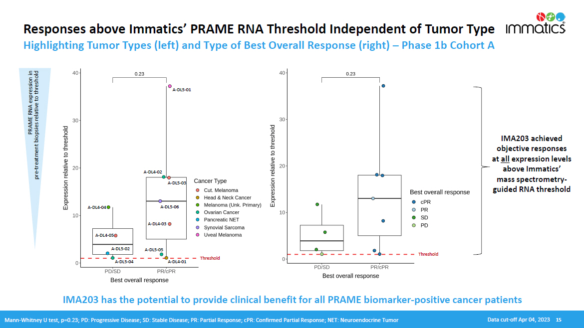 An update on all three IMA203 Phase 1b Cohorts and clinical development path for PRAME TCR-T monotherapy towards registration-directed trials and potential commercialization is planned for 4Q 2023.
