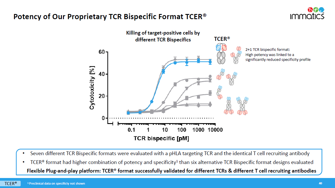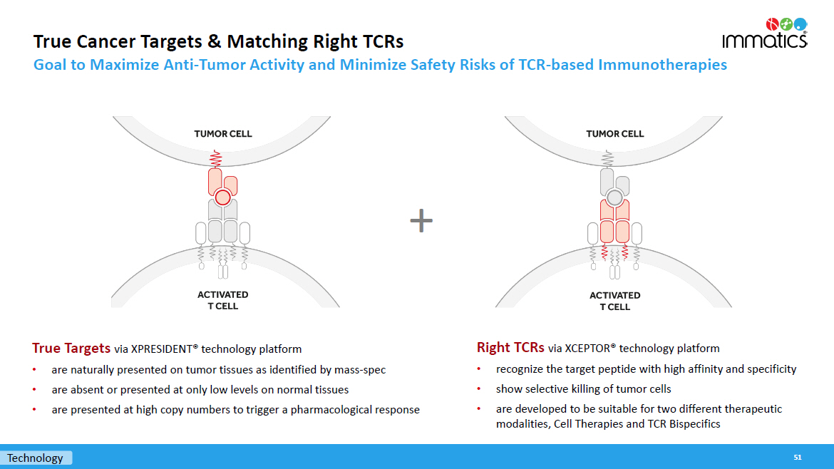 Both approaches, ACTengine® and TCER®, are distinct therapeutic modalities that have the potential to provide innovative treatment options for a variety of cancer patient populations with different medical needs. Immatics will continue to evaluate which of these therapeutic modalities (ACTengine® vs. TCER® or both) is best suited for each cancer type.