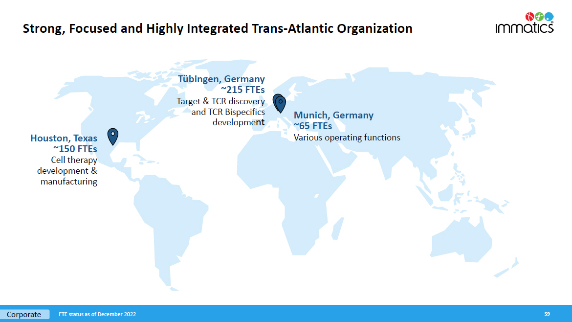 | · | Immatics is currently building a state-of-the-art facility designed to manufacture ACTengine® IMA203 TCR-T products, as well as other cell therapy candidates for registration-directed trials and initial commercial supply. Built with flexibility and cost-efficiency in mind, the facility is designed to be scalable via a modular design to accommodate manufacturing demands. The facility is expected to be operational in 2024. |