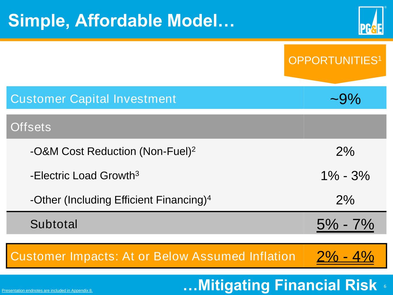 ® 6 Presentation endnotes are included in Appendix 8. OPPORTUNITIES1 Customer Capital Investment ~9% Offsets -O&M Cost Reduction (Non-Fuel)2 2% -Electric Load Growth3 1% - 3% -Other (Including Efficient Financing)4 2% Subtotal 5% - 7% Customer Impacts: At or Below Assumed Inflation 2% - 4% Simple, Affordable Model… …Mitigating Financial Risk