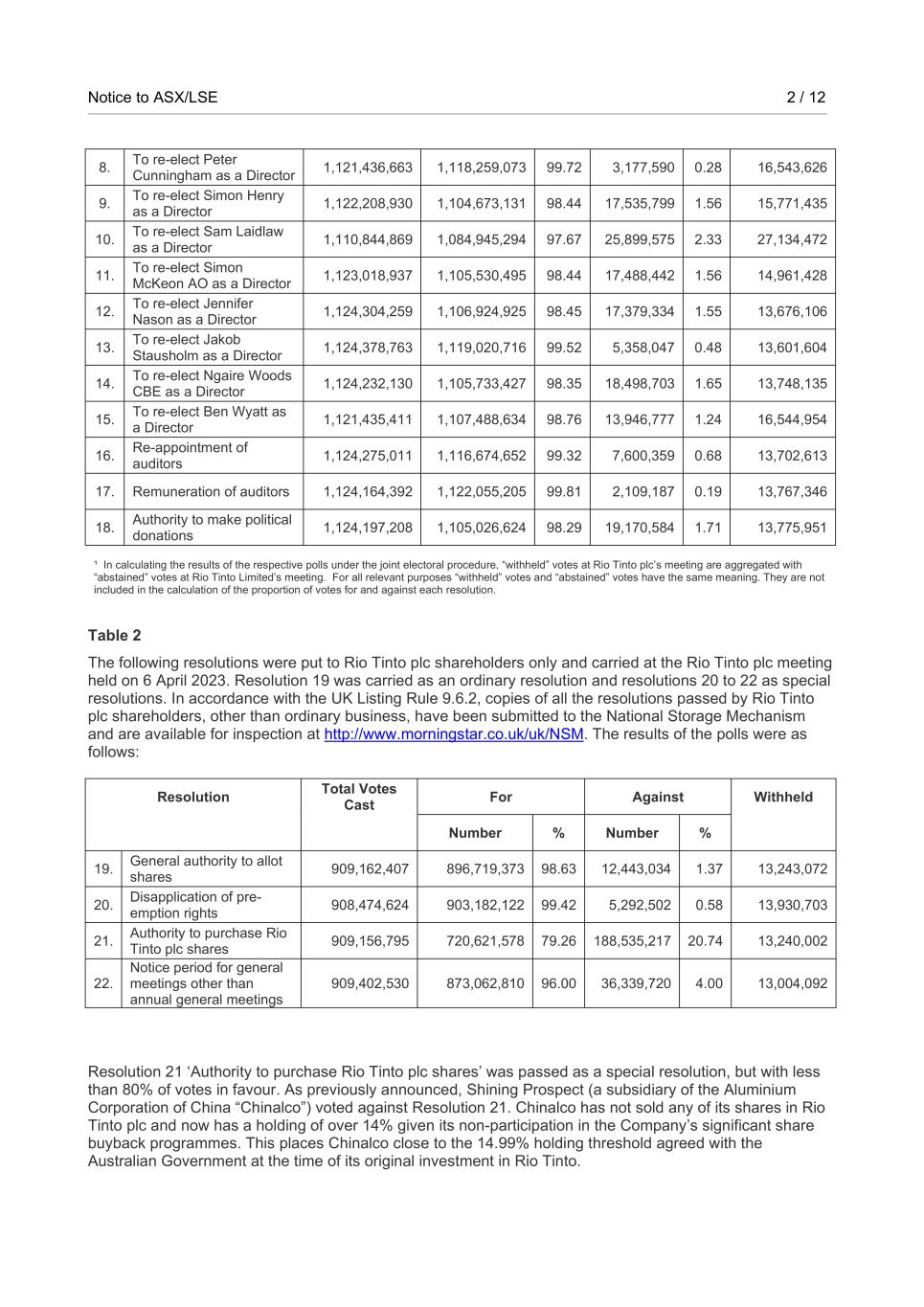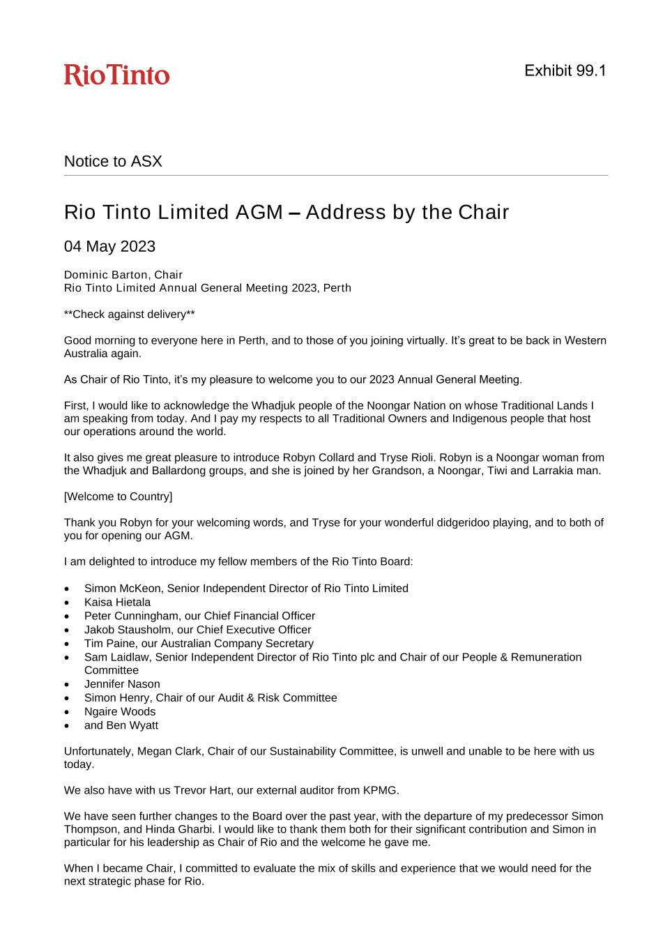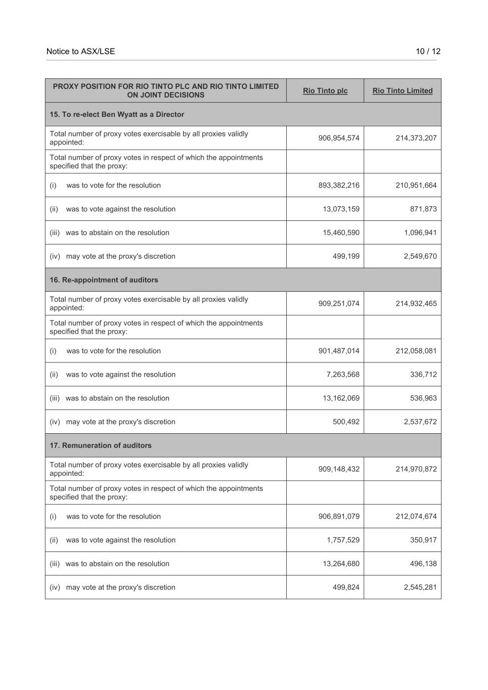 | Rio Tinto plc | Rio Tinto Limited |