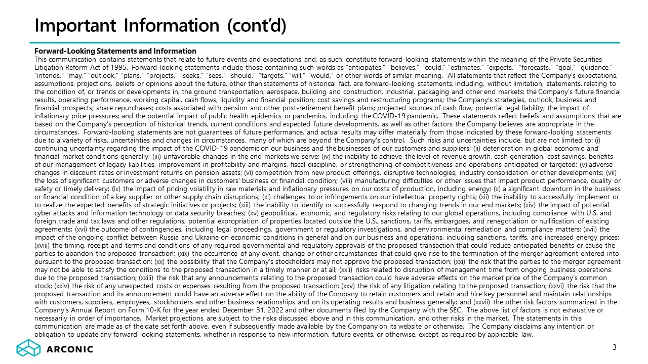 Important Information (cont’d) 3 Forward-Looking Statements and