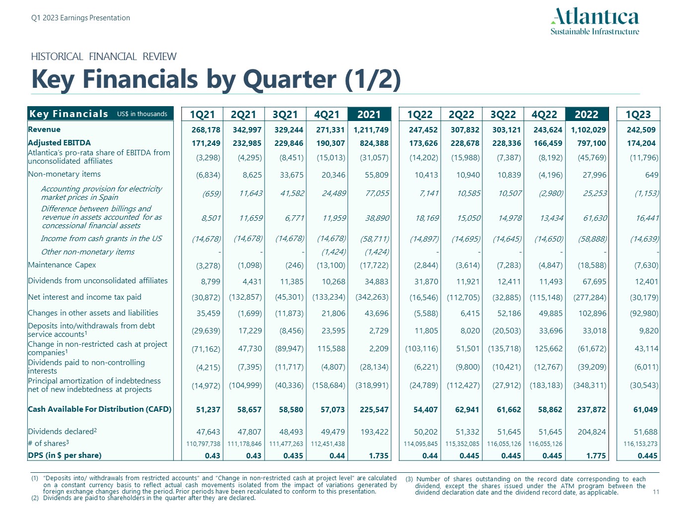 EBITDA 171,249 232,985 229,846 190,307 824,388 173,626 228,678 228,336 166,459 797,100 174,204 Atlantica’s pro-rata share of EBITDA from unconsolidated