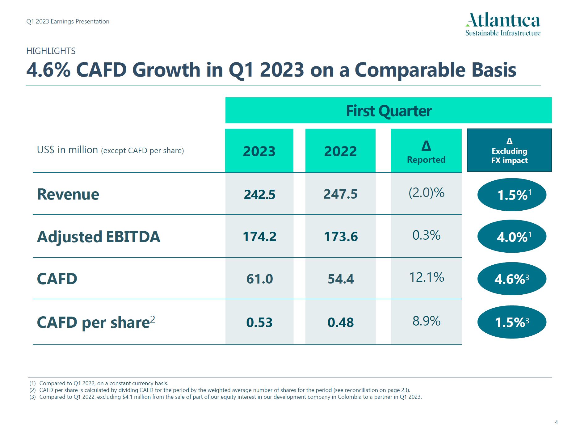 into/ withdrawals from restricted accounts” and “Change in non-restricted cash at project level” are calculated on a constant currency basis to reflect actual cash movements isolated from the impact of variations generated by foreign