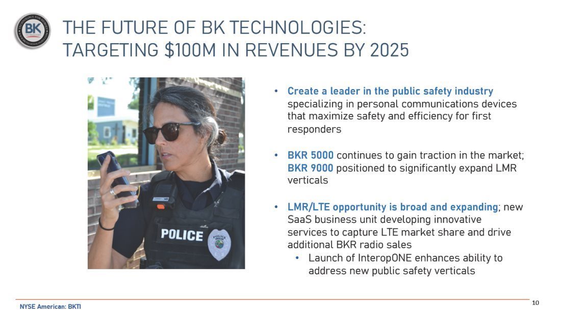 Slide 10. On our last slide, we reiterate our longer-term goal of reaching $100 million in revenue by 2025, we are investing to drive profitable growth with the vision to establish BK as a premier personal communications technology provider for the public safety and critical communications markets. Our BKR 5000 is a proven success in its appeal to new customers as well as to existing customers.