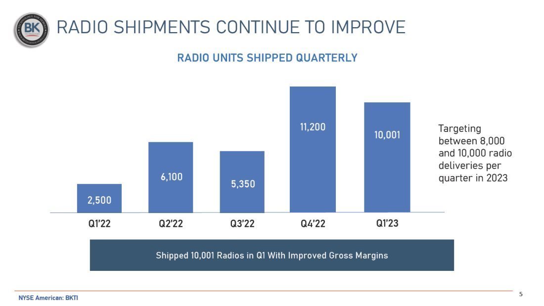 Slide 5, Slide 5 illustrates continued traction we're seeing with our BKR 5000. In the quarter, we shipped 10,001 units coming in at the top end of our quarterly shipment target. Our manufacturing and production operations are executing well and as we move through 2023, we're targeting the shipment of 8,000 to 10,000 radios each quarter.