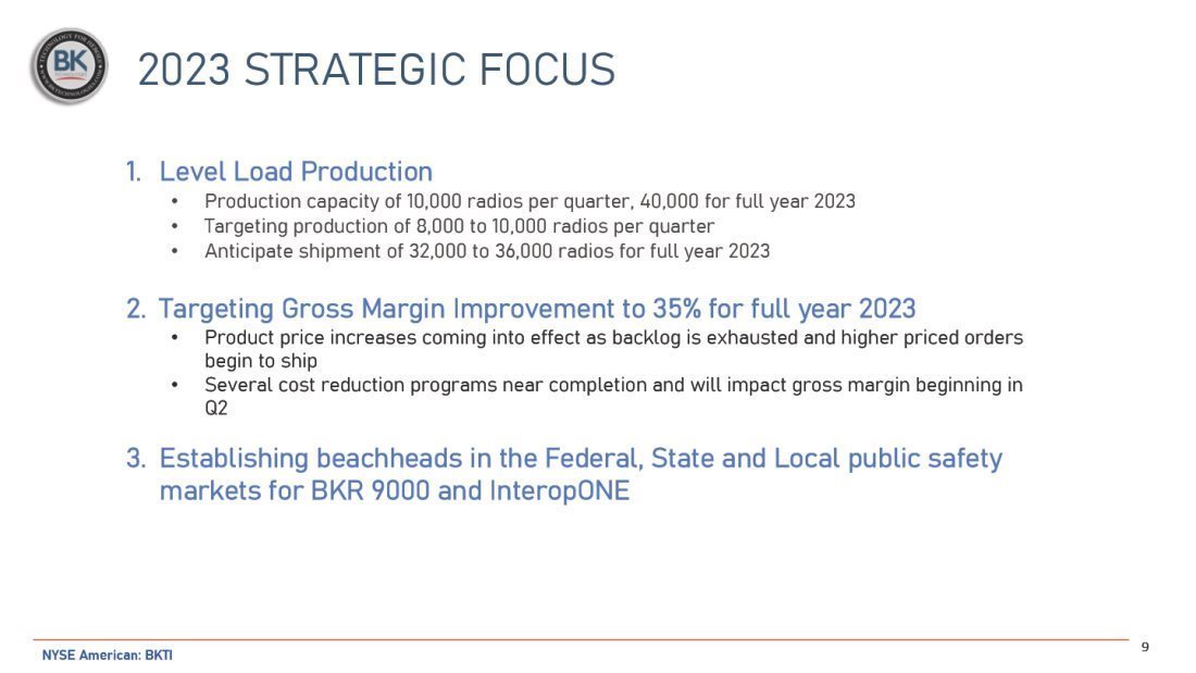 In our third area of focus, we want to continue to establish strategic beachheads in the federal, state and local public safety markets for the BKR 9000 multi-band portable radio and InteropONE. We believe that establishing these beachheads is important as we plan for continued growth in 2024 and achieving our 2025 goal.