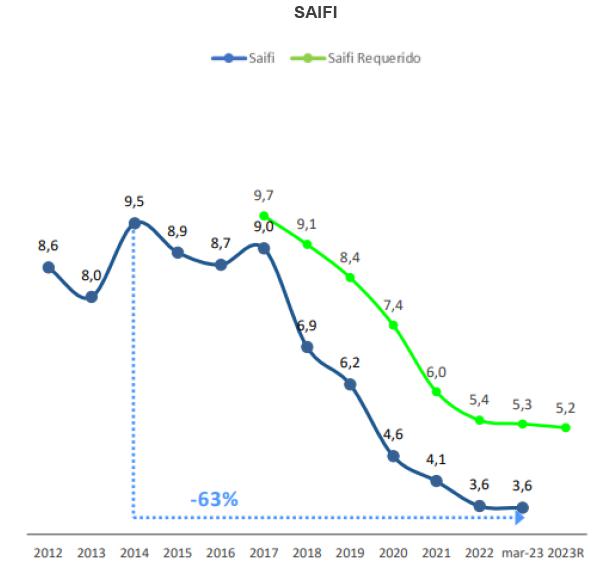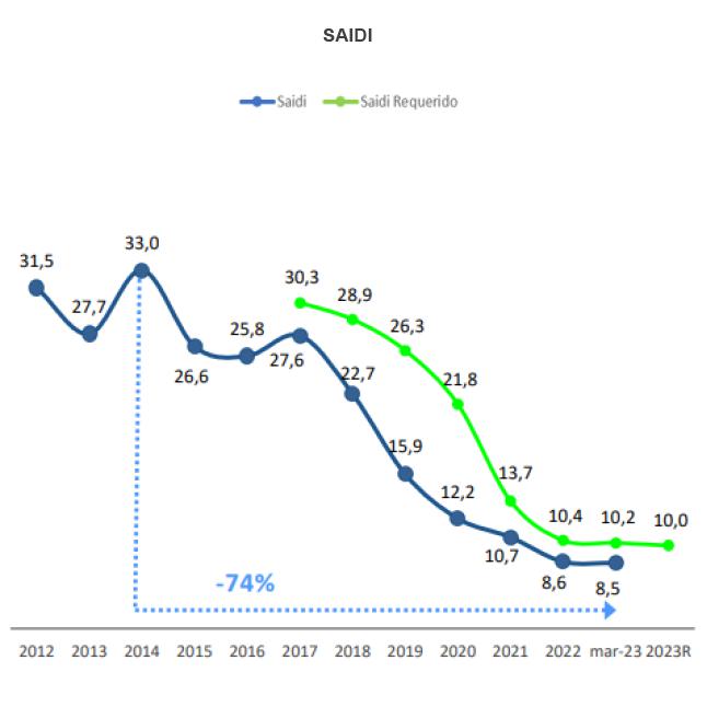 At the end of March 2023, collection of trade receivables was 94.3%, the defaulting balance amounted to 7,237 million pesos, and general customer satisfaction was 89,3%.