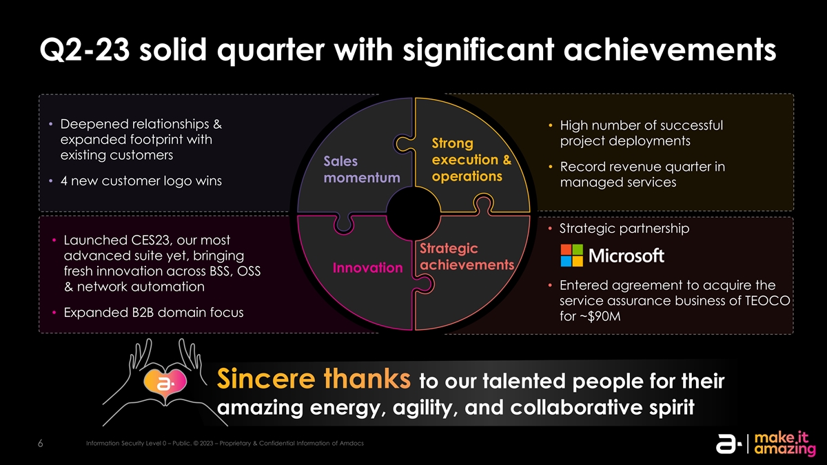 In addition, on May 10, 2023, Amdocs also announced that it has entered into a definitive agreement to acquire the service assurance business of TEOCO for consideration of approximately $90 million in cash, subject to the satisfaction of the conditions to closing. A copy of the press release is furnished as Exhibit 99.3 to this Report of Foreign Private Issuer on Form 6-K.