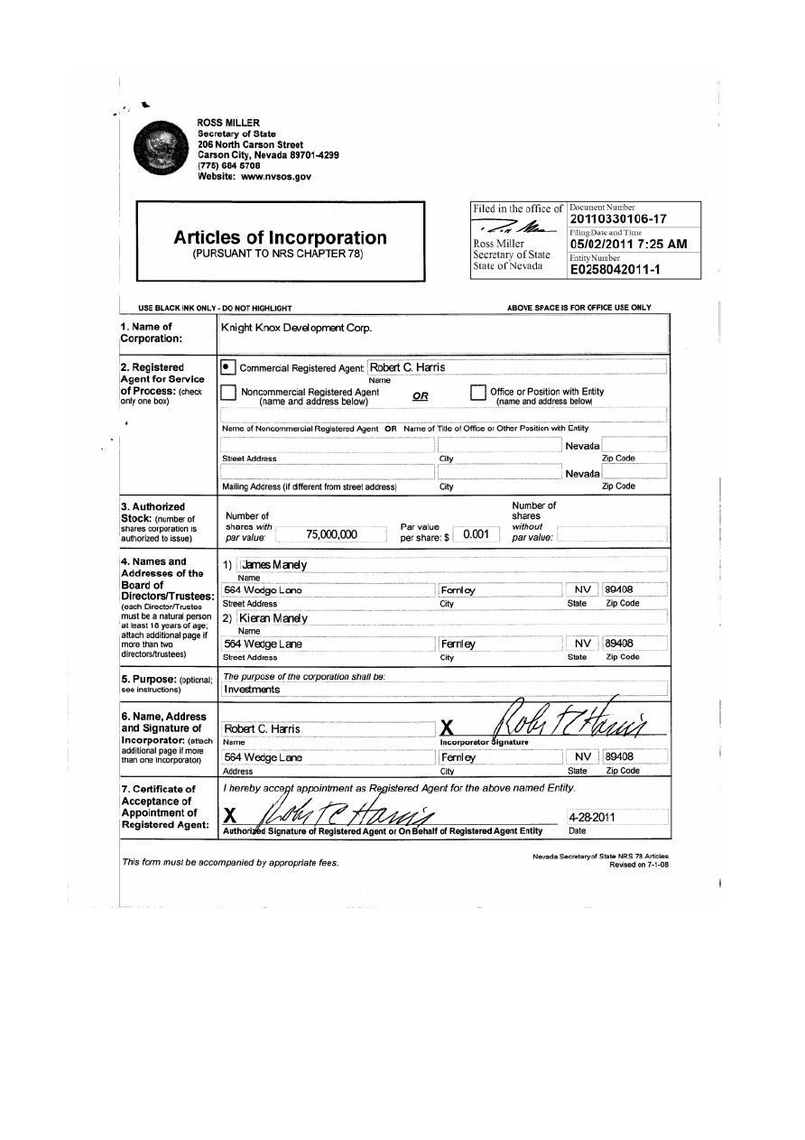 | Gregory D. Gorgas President, Chief Executive Officer, Chief Financial Officer, Treasurer and Director (Principal Executive Officer, Principal Financial Officer and Principal Accounting Officer) |