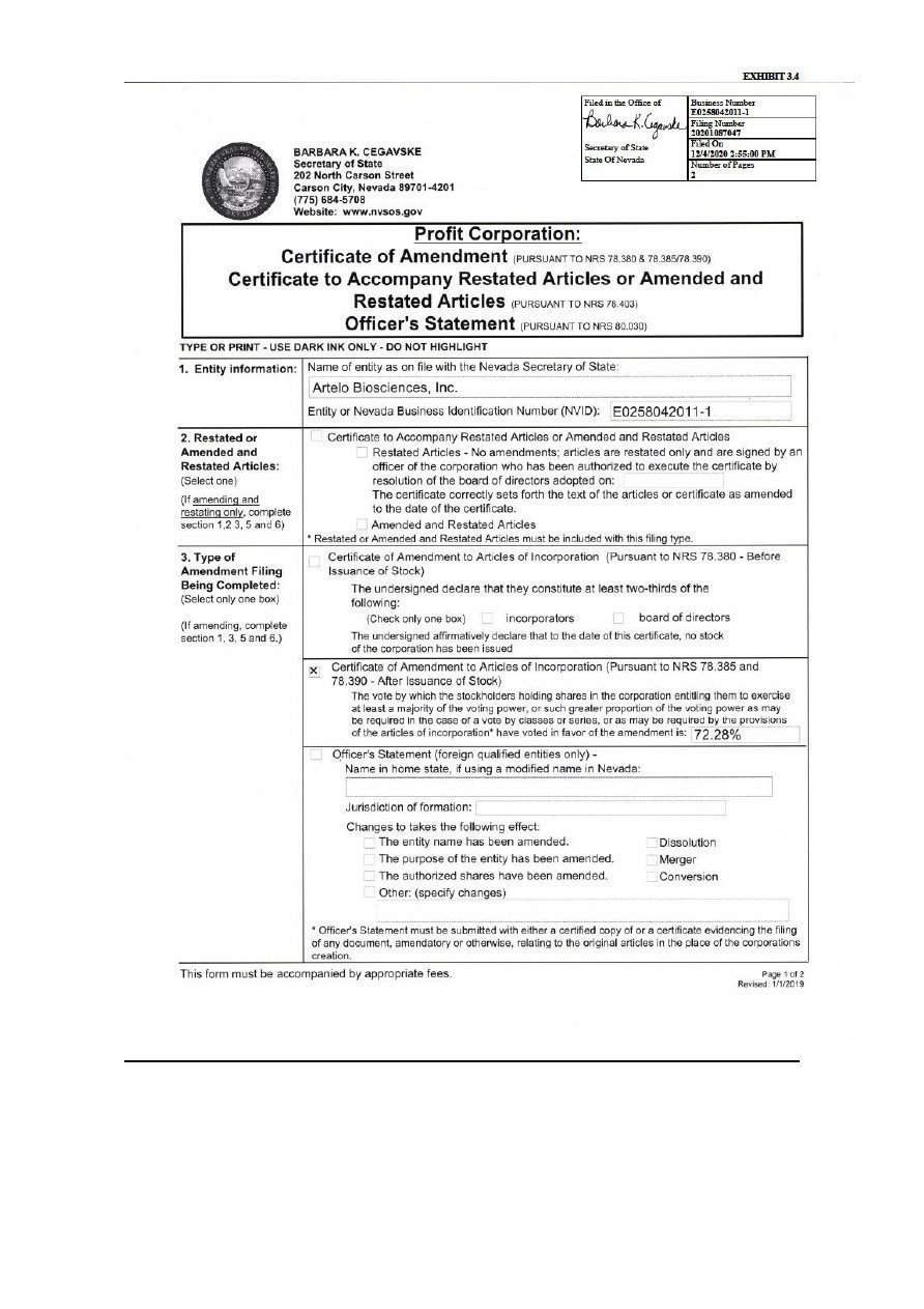 | Artelo Biosciences, Inc. | ||