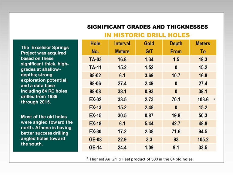 For further information about Athena Gold Corporation and our Excelsior Springs Gold project, please visit www.athenagoldcorp.com.