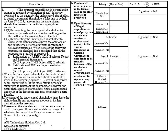 ASE Technology Holding Co., Ltd. 2023 Annual Shareholders’ Meeting Sign-in Card for attendance