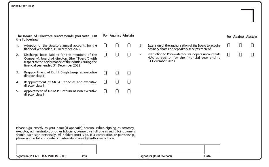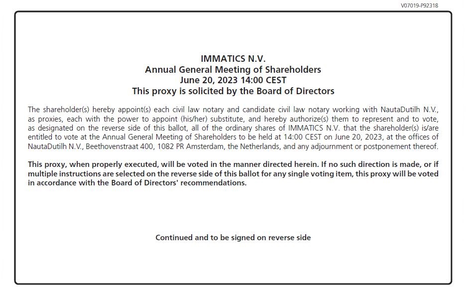 | IMMATICS N.V. | ||