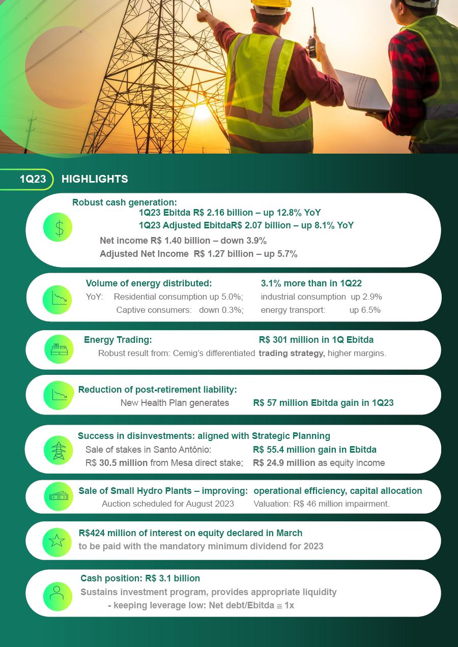 COMPANHIA ENERGÉTICA DE MINAS GERAIS – CEMIG (“CEMIG or Company”), a publicly-held company with shares traded on the stock exchanges of São Paulo, New York, and Madrid hereby informs to the Brazilian Securities and Exchange Commission (CVM), B3 S.A. – Brasil, Bolsa, Balcão (“B3”), and the market in general that the Brazilian Electricity Regulatory Agency (ANEEL) has approved today the result of the Periodic Tariff Revision of CEMIG DISTRIBUIÇÃO S.A. (“CEMIG D”), a wholly-owned subsidiary of Cemig. The Periodic Tariff Revision will become effective on May 28, 2023.