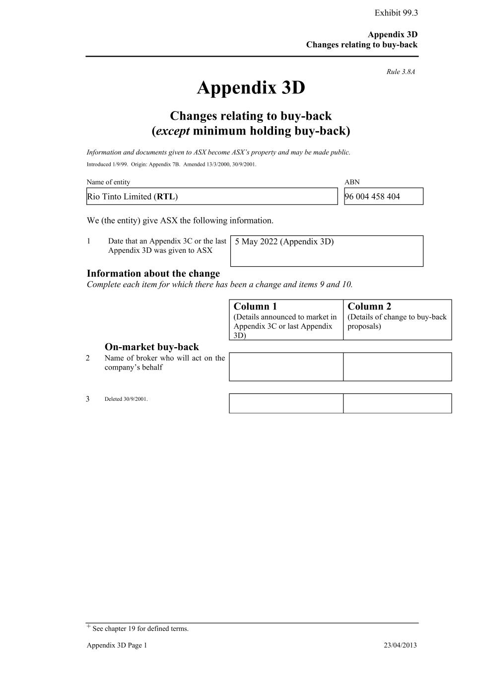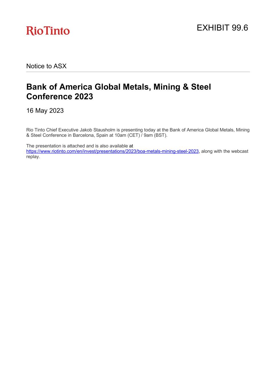 | Rio Tinto plc | Rio Tinto Limited |