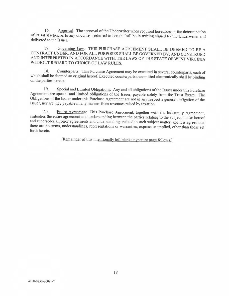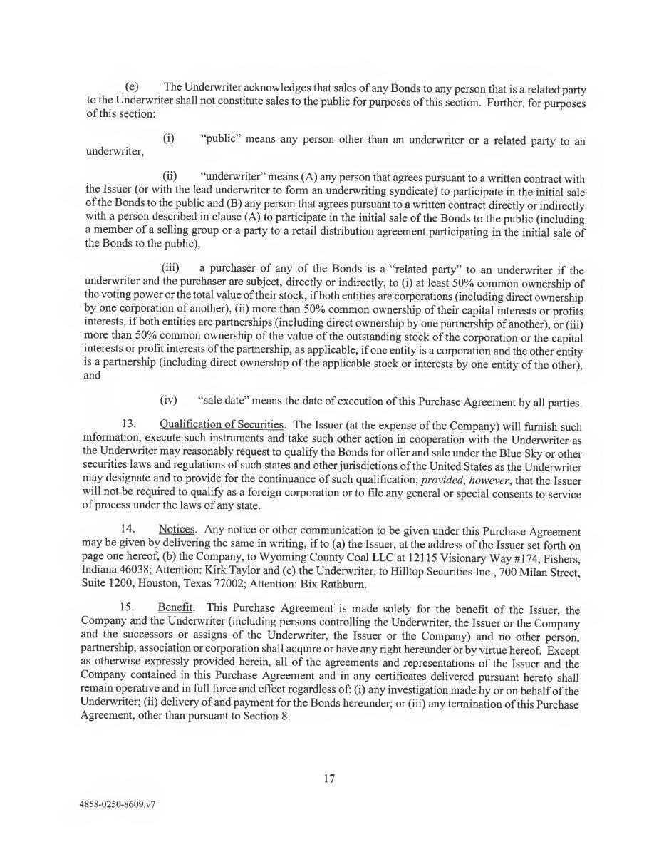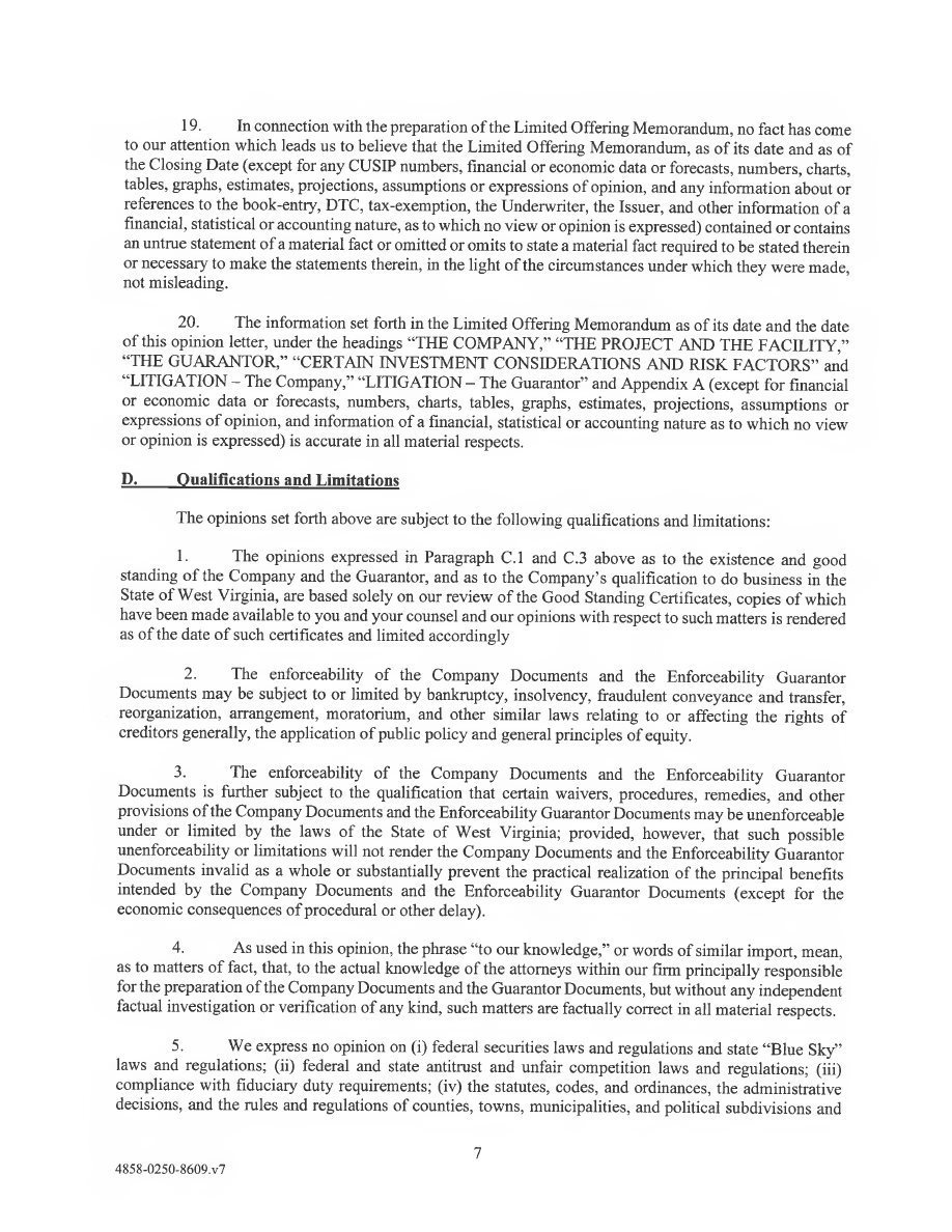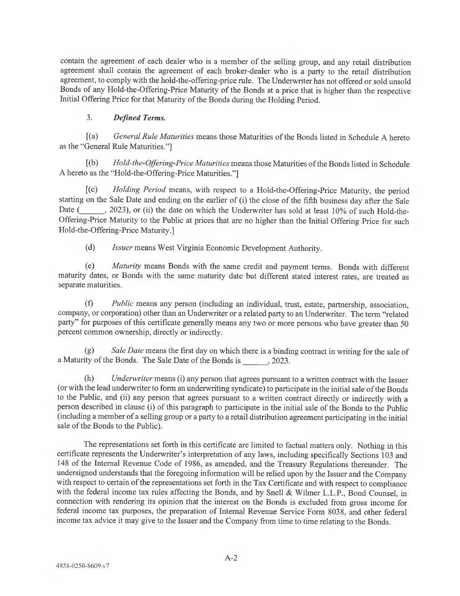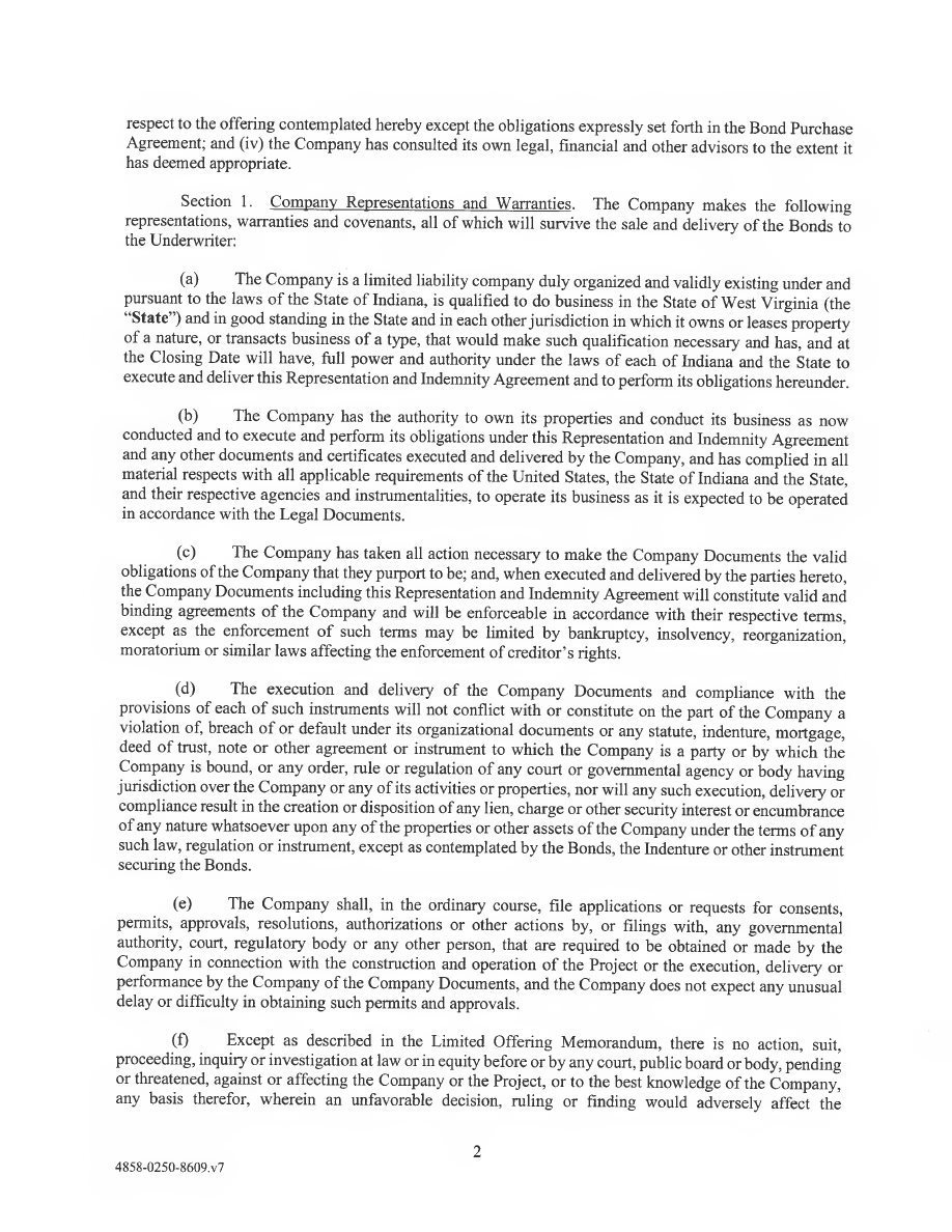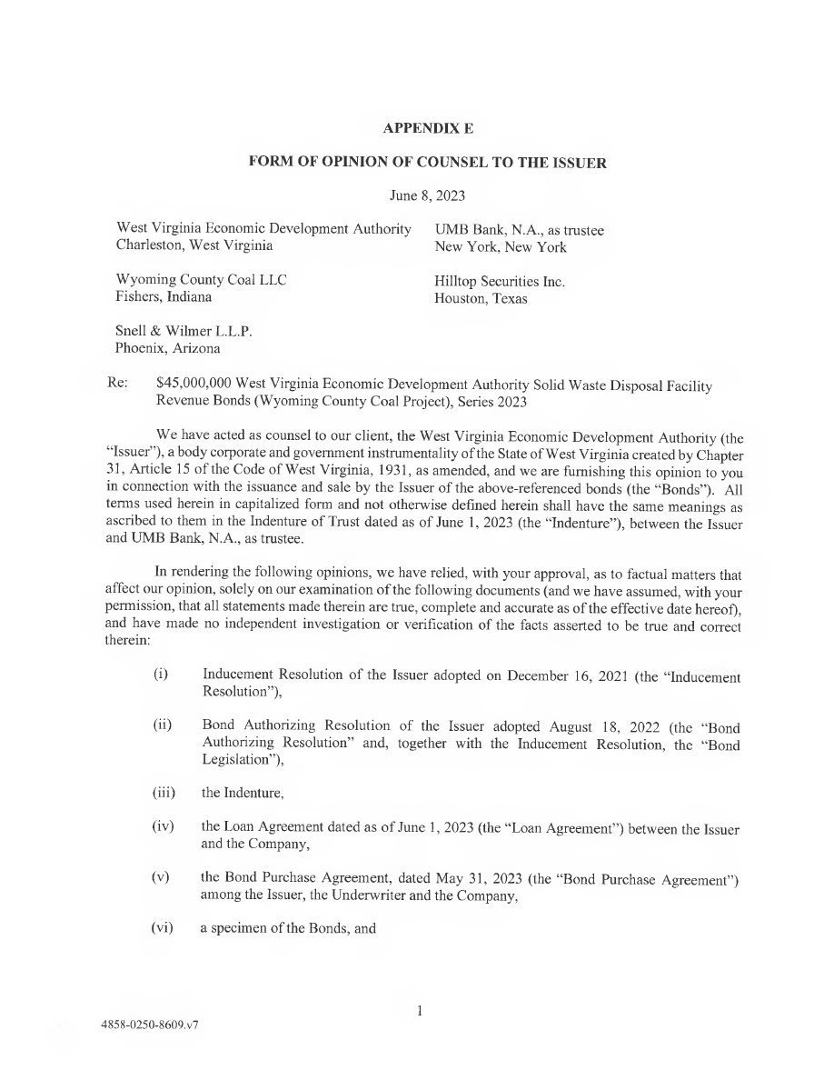 On May 31, 2023, WCC entered into a Bond Purchase Agreement to sell West Virginia Development Authority Solid Waste Disposal Facility Revenue Bonds, Series 2023, at the purchase price of $45,000,000 less an underwriting discount of $900,000. The bonds hold an interest rate of 9% and a maturity date of June 8, 2038. The Bond Purchase Agreement is due to close on June 8, 2023, subject to customary closing conditions and document delivery.