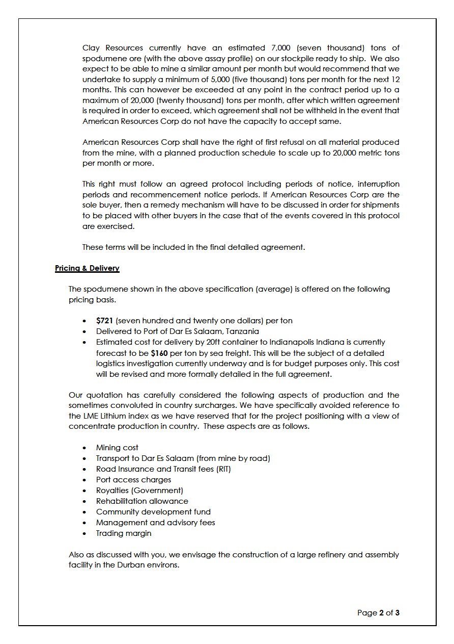 Additionally, Mr. Courtenay. Taplin, a Director of American Resources Corporation who brings over 40 years of experience of sourcing and supplying iron ore, coke, metallurgical coal, and other natural resource raw materials to assist American Resources with their supply chain, logistics, customers and overall corporate strategy is also Managing Director with Clay Resources. Mr. Taplin did not have any involvement or bearing on American Resources’ decision to enter in the Purchase Agreement.