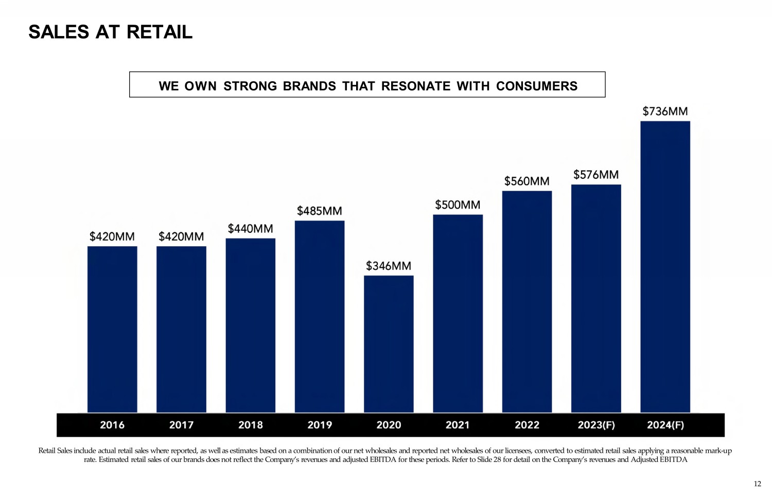 SALES AT RETAIL WE OWN STRONG BRANDS THAT RESONATE WITH CONSUMERS Retail Sales include actual retail sales where reported, as well as estimates based on a combination of our net wholesales and reported net wholesales of our licensees, converted to estimated retail sales applying a reasonable mark - up rate. Estimated retail sales of our brands does not reflect the Company’s revenues and adjusted EBITDA for these periods. Refer to Slide 28 for detail on the Company’s revenues and Adjusted EBITDA 12