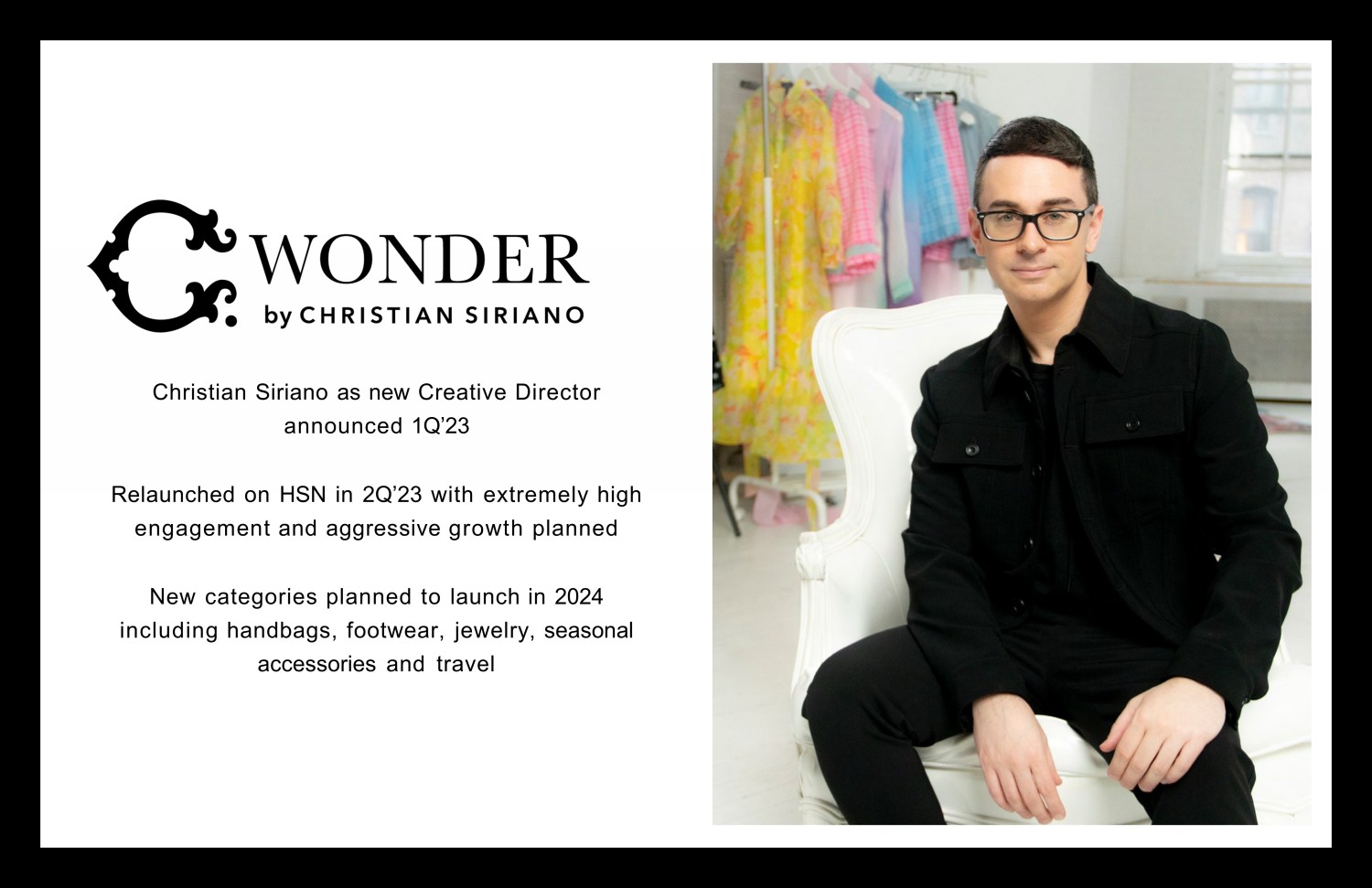 Christian Siriano as new Creative Director announced 1Q’23 Relaunched on HSN in 2Q’23 with extremely high engagement and aggressive growth planned New categories planned to launch in 2024 including handbags, footwear, jewelry, seasonal accessories and travel 22