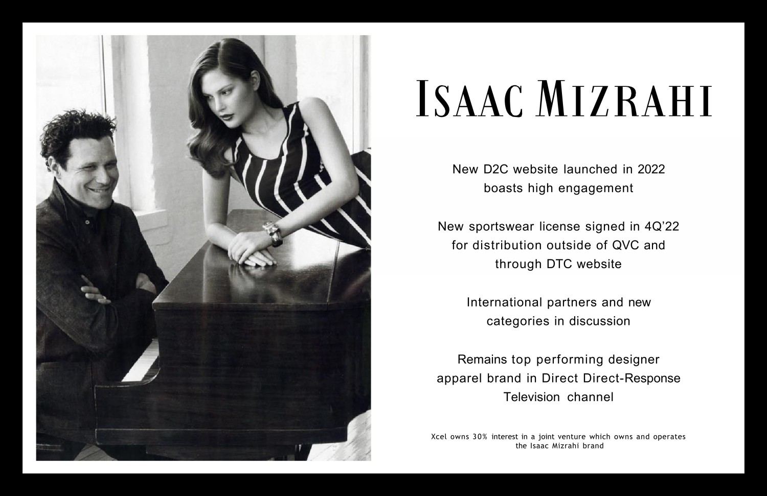 New D2C website launched in 2022 boasts high engagement New sportswear license signed in 4Q’22 for distribution outside of QVC and through DTC website International partners and new categories in discussion Remains top performing designer apparel brand in Direct Direct - Response Television channel Xcel owns 30% interest in a joint venture which owns and operates the Isaac Mizrahi brand 23