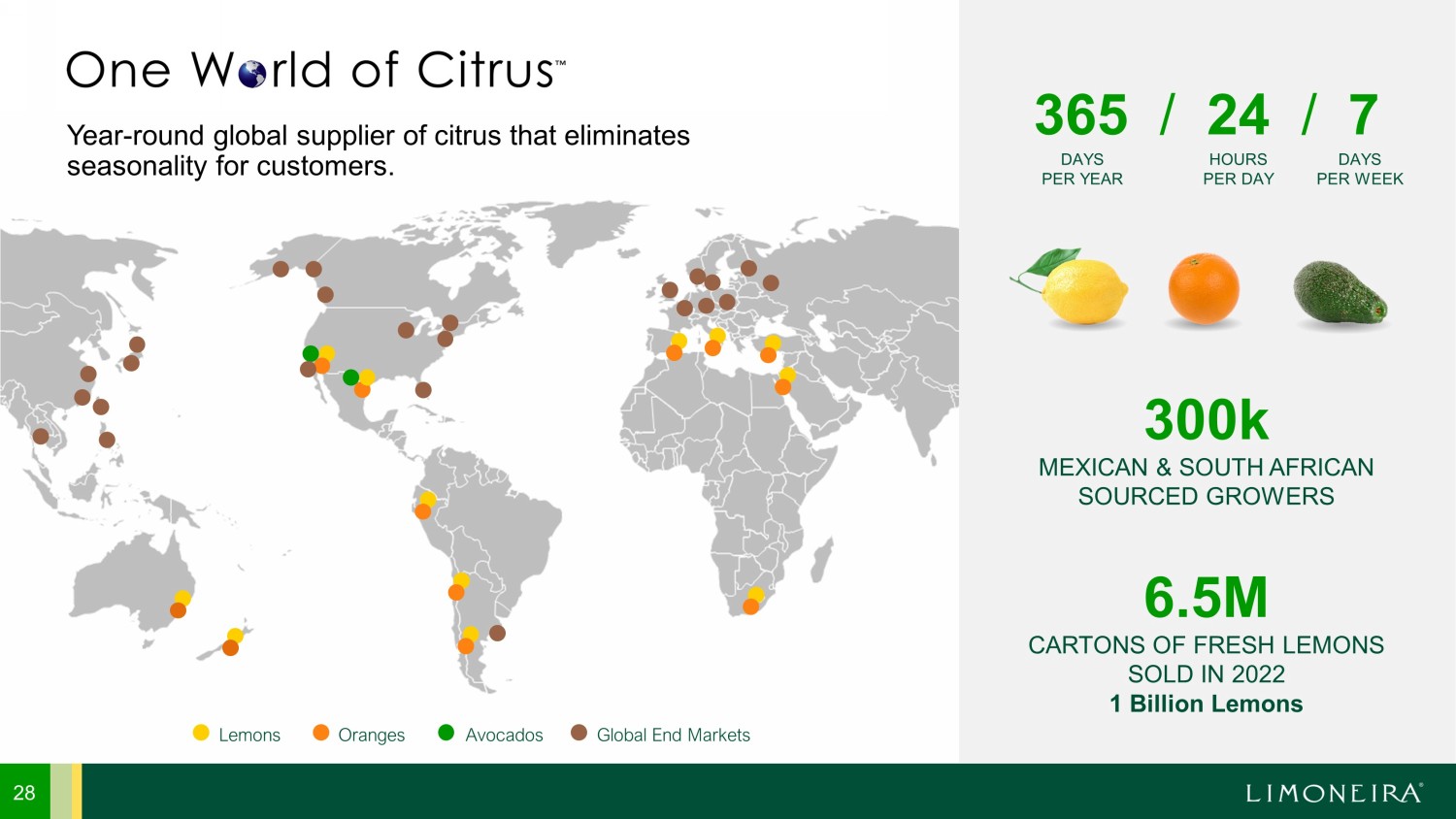 Year - round global supplier of citrus that eliminates seasonality for customers. 28 Lemons Avocados Oranges Global End Markets DAYS PER YEAR DAYS PER WEEK HOURS PER DAY 300k MEXICAN & SOUTH AFRICAN SOURCED GROWERS 365 / 24 / 7 6.5M CARTONS OF FRESH LEMONS SOLD IN 2022 1 Billion Lemons