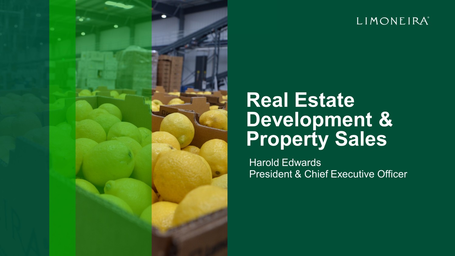 Real Estate Development & Property Sales Harold Edwards President & Chief Executive Officer