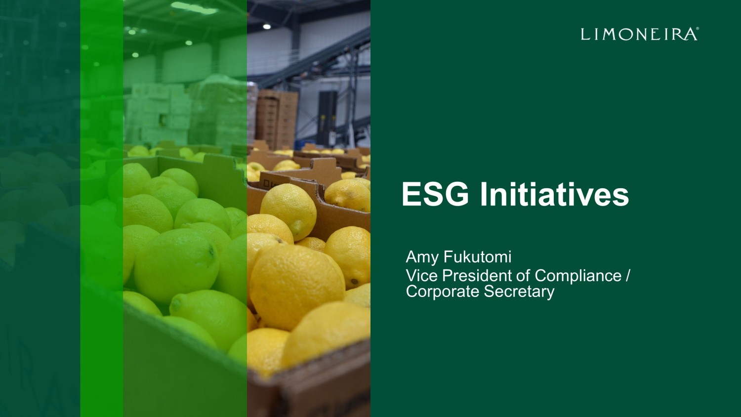 ESG Initiatives Amy Fukutomi Vice President of Compliance / Corporate Secretary