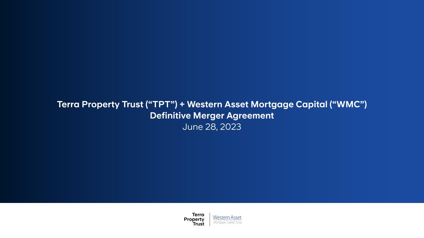 In connection with the proposed Merger, WMC expects to file with the U.S. Securities and Exchange Commission (the “SEC”) a registration statement on Form S-4 (the “Registration Statement”) that contains a prospectus of WMC that will also include a joint proxy statement of WMC and TPT (the “joint proxy statement/prospectus”). The joint proxy statement/prospectus will contain important information about WMC, TPT, the proposed Merger and related matters. WMC and TPT also expect to file with the SEC other documents regarding the Merger. STOCKHOLDERS OF WMC AND TPT ARE URGED TO READ THE REGISTRATION STATEMENT AND THE JOINT PROXY STATEMENT/PROSPECTUS (INCLUDING ALL AMENDMENTS AND SUPPLEMENTS THERETO) AND OTHER RELEVANT DOCUMENTS THAT ARE FILED OR WILL BE FILED BY WMC AND TPT WITH THE SEC, AS WELL AS ANY AMENDMENTS AND SUPPLEMENTS TO THESE DOCUMENTS) CAREFULLY IF AND WHEN THEY BECOME AVAILABLE, BECAUSE SUCH DOCUMENTS WILL CONTAIN IMPORTANT INFORMATION ABOUT WMC, TPT AND THE PROPOSED MERGER AND RELATED MATTERS. Stockholders of WMC and TPT may obtain free copies of the Registration Statement, the joint proxy statement/prospectus and all other documents filed or that will be filed by WMC or TPT with the SEC (if and when they become available) through the website maintained by the SEC at http://www.sec.gov. Copies of documents filed with the SEC by WMC will be made available free of charge on WMC’s website at http://www.westernassetmcc.com, or by directing a request to its Investor Relations, Attention: Larry Clark at (310) 622-8223; email: lclark@finprofiles.com. Copies of documents filed with the SEC by TPT will be made available free of charge on TPT’s website at https://www.terrapropertytrust.com, or by directing a request to its Investor Relations at (212) 257-4666; email: ir@mavikcapital.com.