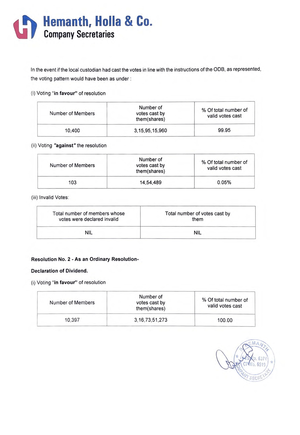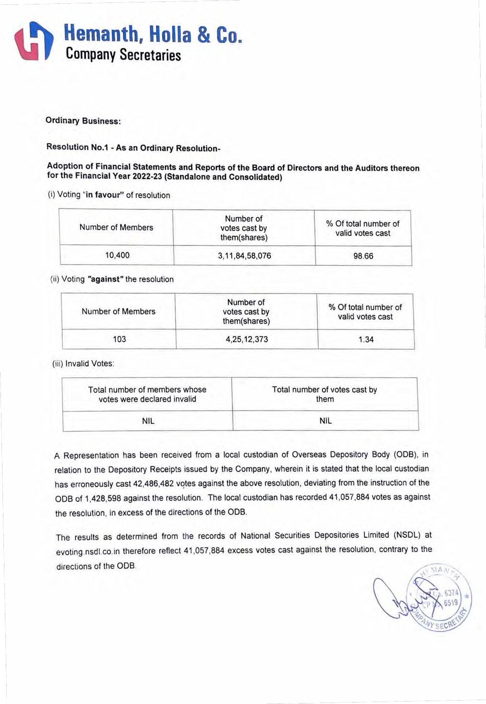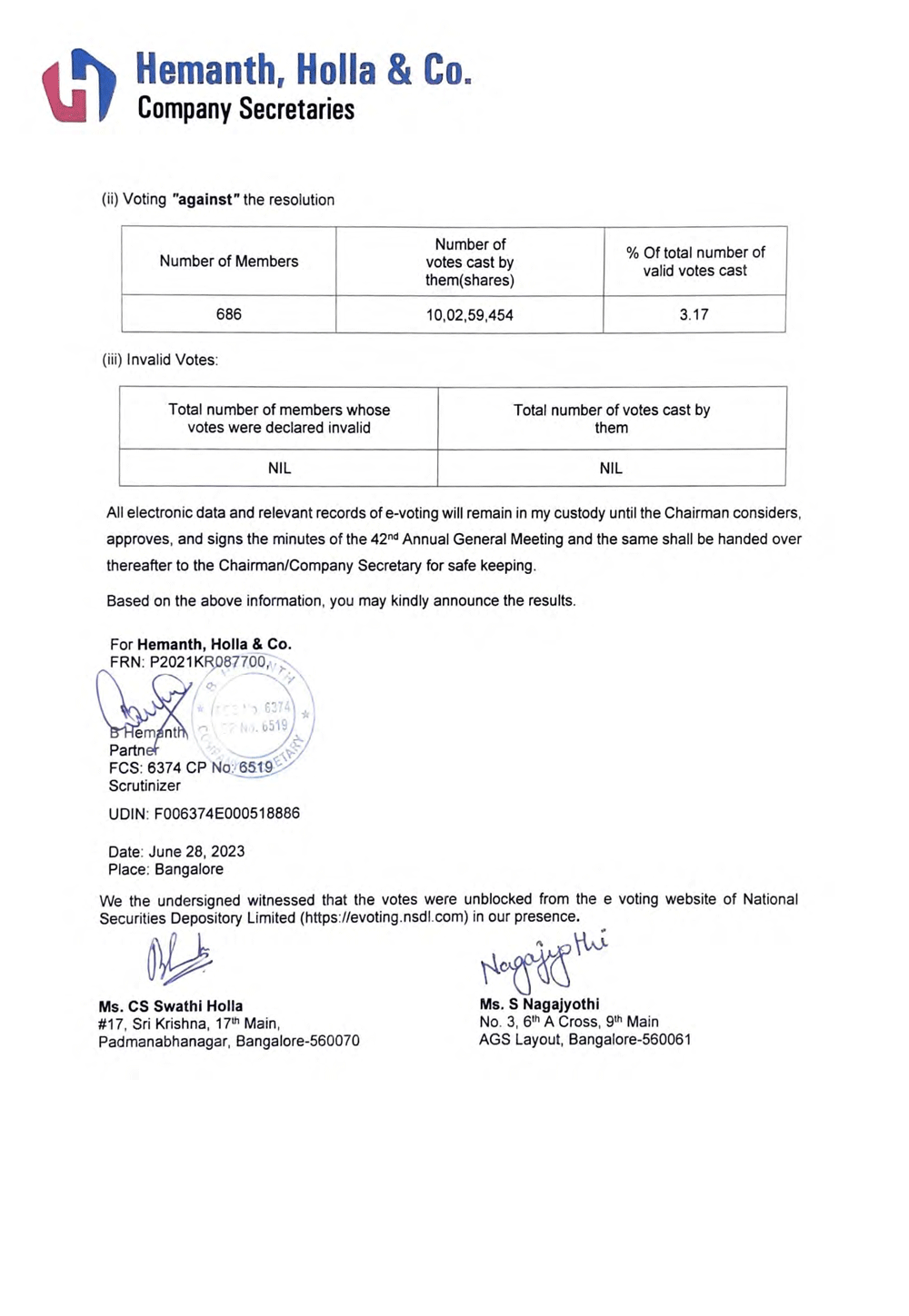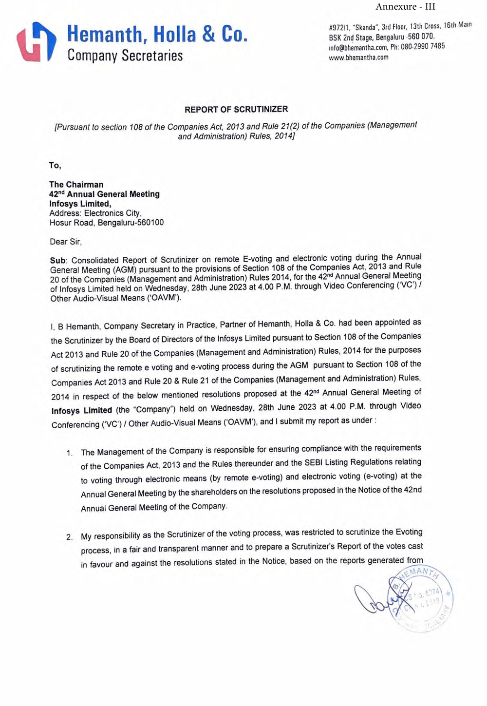 | 99.1 | Outcome of the 42nd Annual General Meeting |