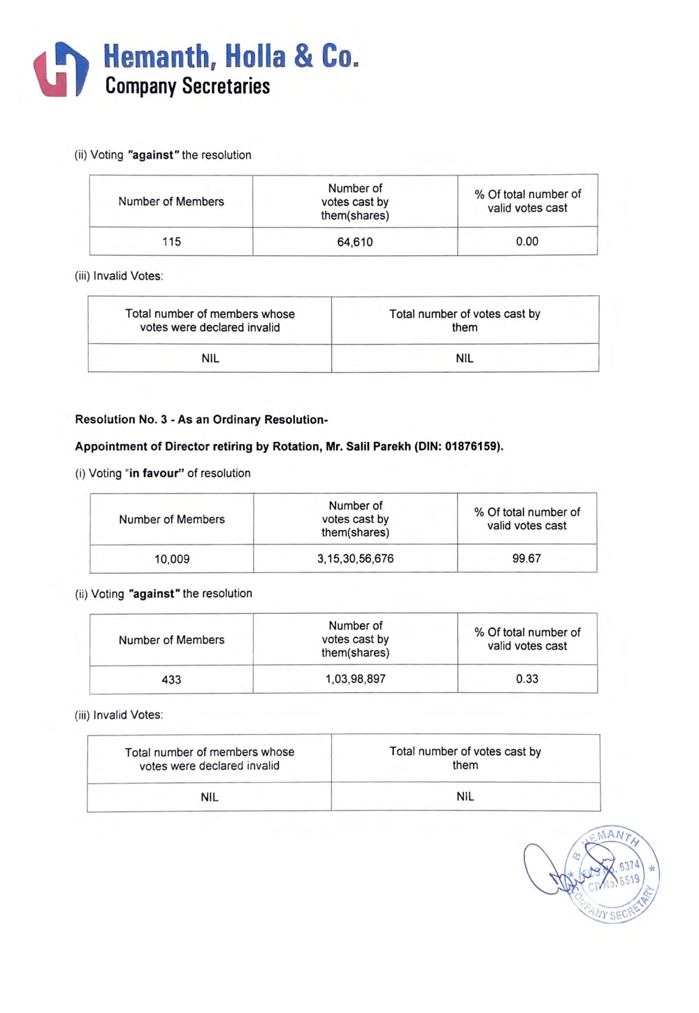 The outcome of the AGM includes the brief proceedings, Chairman’s speech, voting results and the scrutinizer’s report.