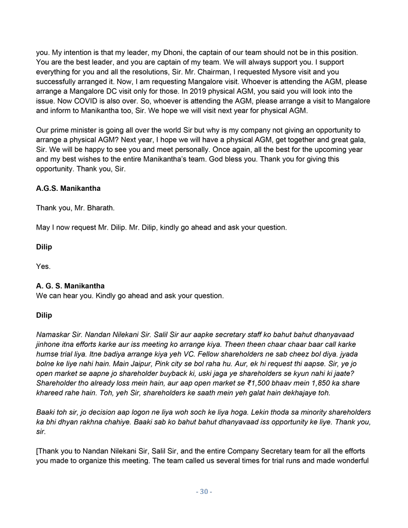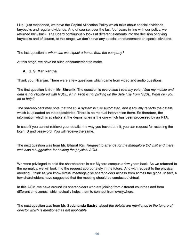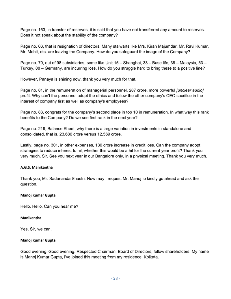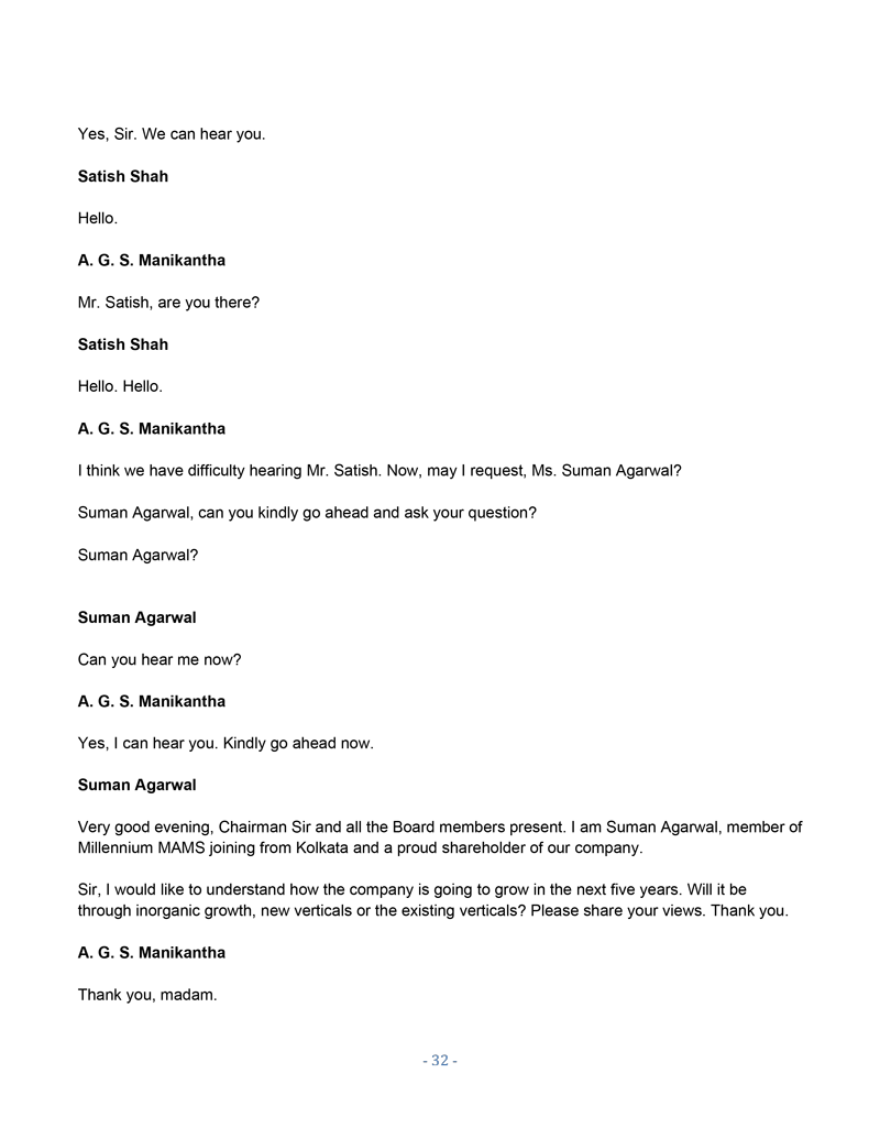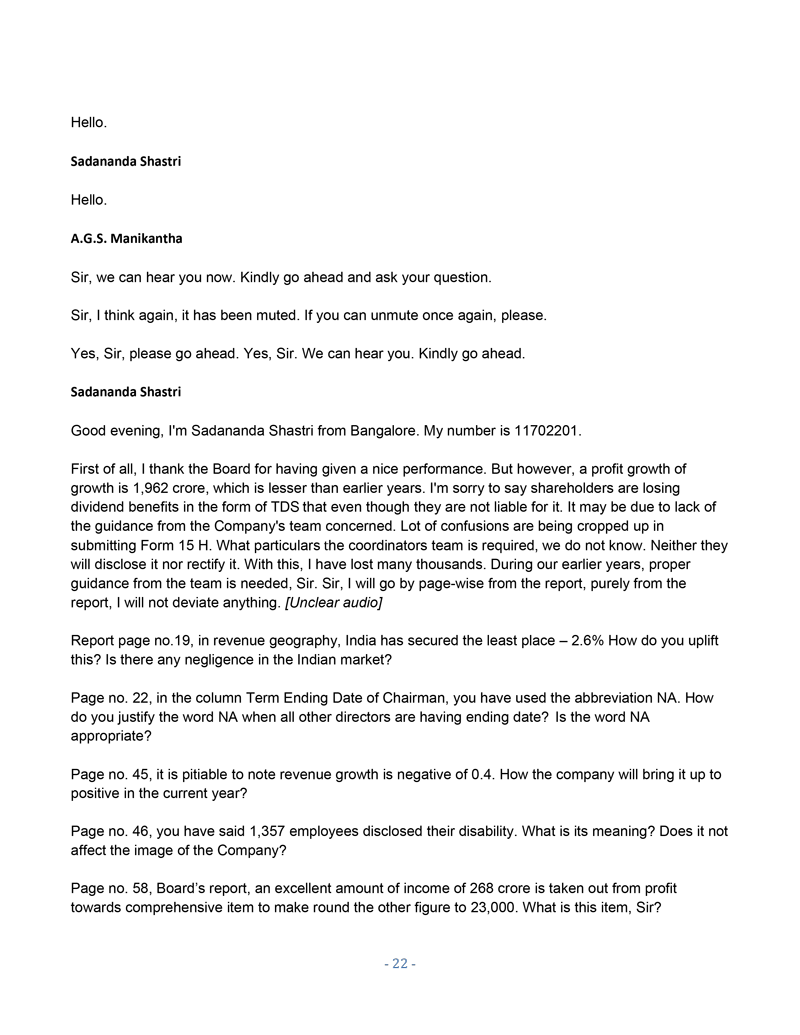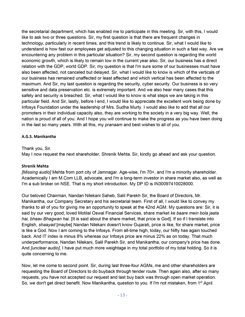 Transcript of 42nd Annual General Meeting held on June 28, 2023