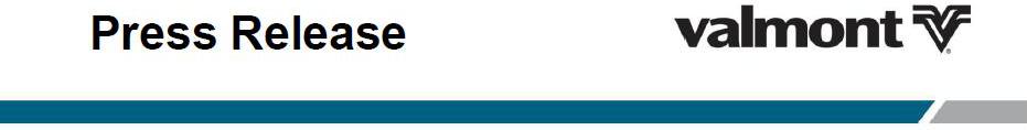 Mr. Bay continued, “On behalf of the board, I want to thank Steve for his leadership and the positive impact he had on Valmont, including cultivating a highly talented and experienced executive team that has been instrumental in positioning Valmont for long-term, profitable growth. I look forward to following Steve’s continued success and wish him all the best in his future endeavors.”