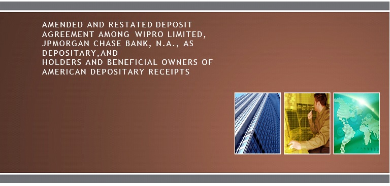 | (a) | Form of Amended and Restated Deposit Agreement among Wipro Limited (the "Company"), JPMorgan Chase Bank, N.A., as depositary (the "Depositary"), and all Holders and Beneficial Owners from time to time of ADRs issued thereunder (the "Deposit Agreement"), including the form of ADR. Filed herewith as Exhibit (a). |