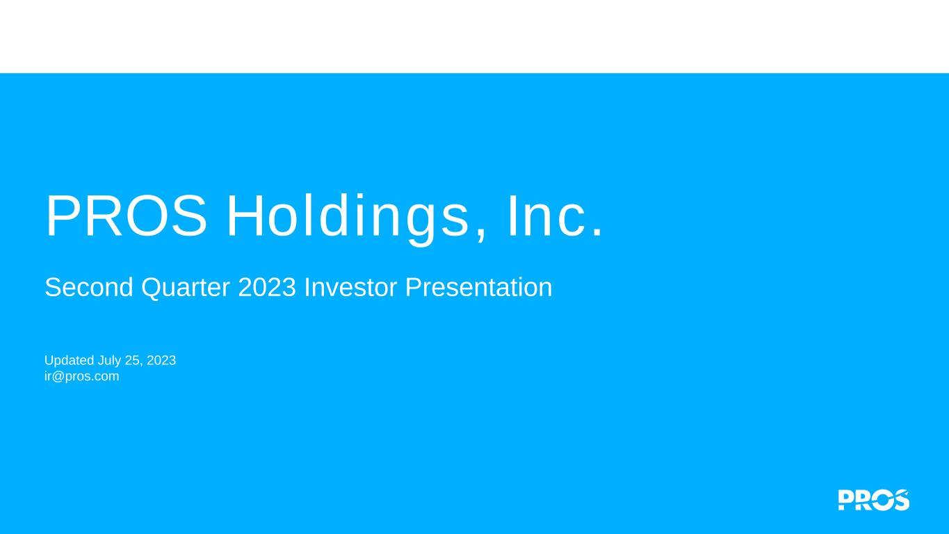 PROS Holdings, Inc. Second Quarter 2023 Investor Presentation Updated July 25, 2023 ir@pros.com