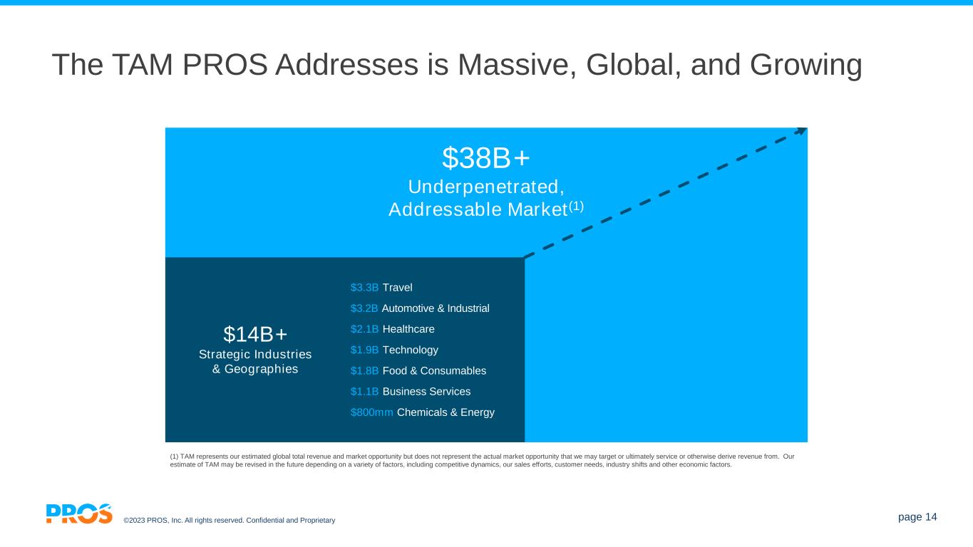 ©2023 PROS, Inc. All rights reserved. Confidential and Proprietary page 13 The Power of AI Driving Measurable Business Outcomes 400% ROI in 3 years Payback in 9 months & Source: Forrester Total Economic Impact Report, 2023 +8% Revenue Uplift +200 bp Margin Improvement +67% Efficiency Gain Source: PROS study of 131 customers’ self-reported results, 2022 Our customers have said… Industry experts have said…