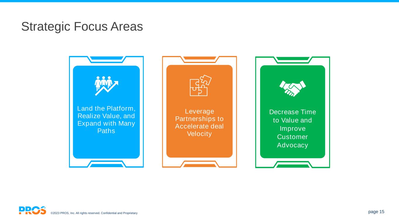 ©2023 PROS, Inc. All rights reserved. Confidential and Proprietary page 15 Strategic Focus Areas Land the Platform, Realize Value, and Expand with Many Paths Leverage Partnerships to Accelerate deal Velocity Decrease Time to Value and Improve Customer Advocacy