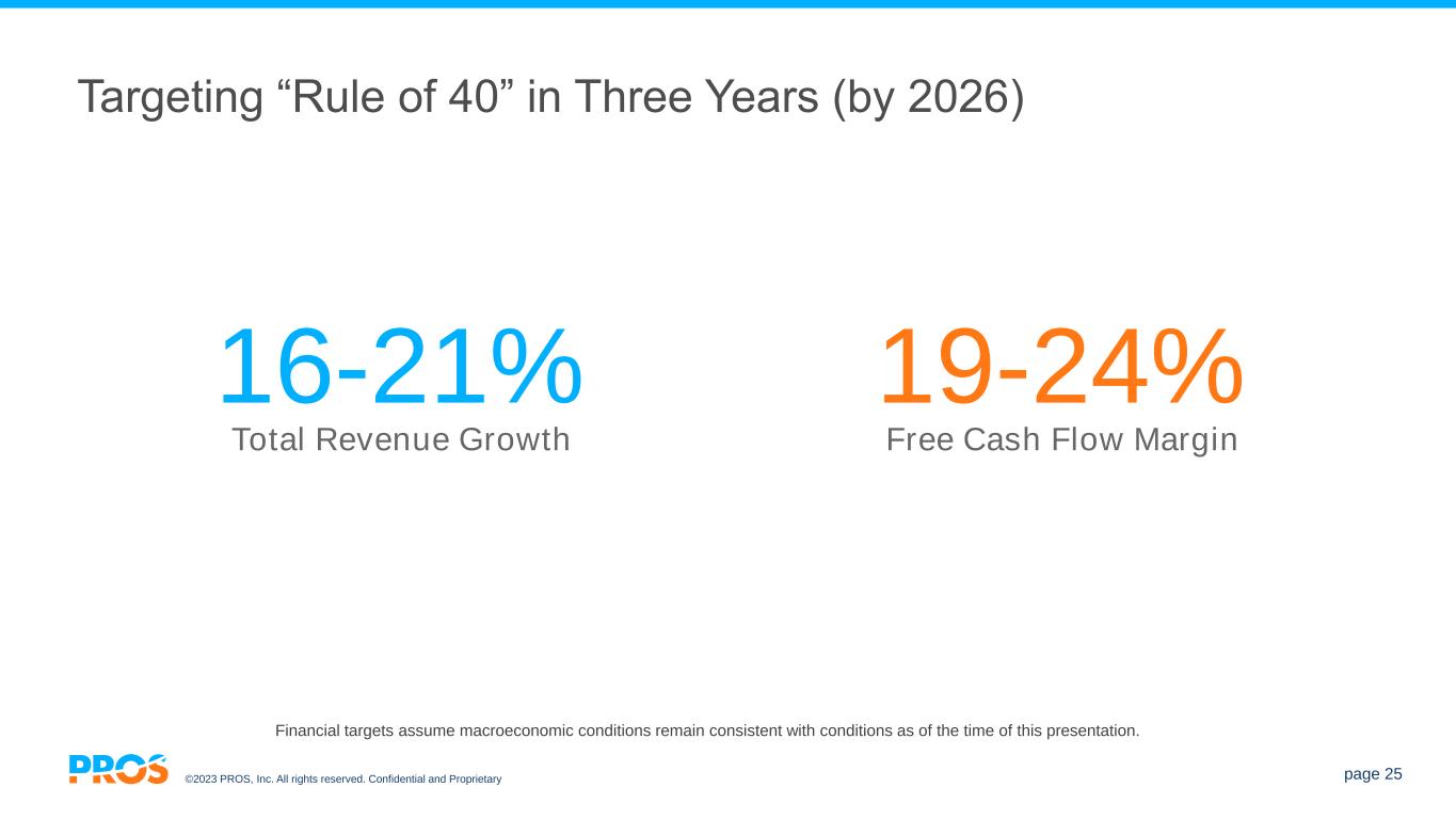 ©2023 PROS, Inc. All rights reserved. Confidential and Proprietary page 25 Targeting “Rule of 40” in Three Years (by 2026) 16-21% 19-24% Total Revenue Growth Free Cash Flow Margin Financial targets assume macroeconomic conditions remain consistent with conditions as of the time of this presentation.