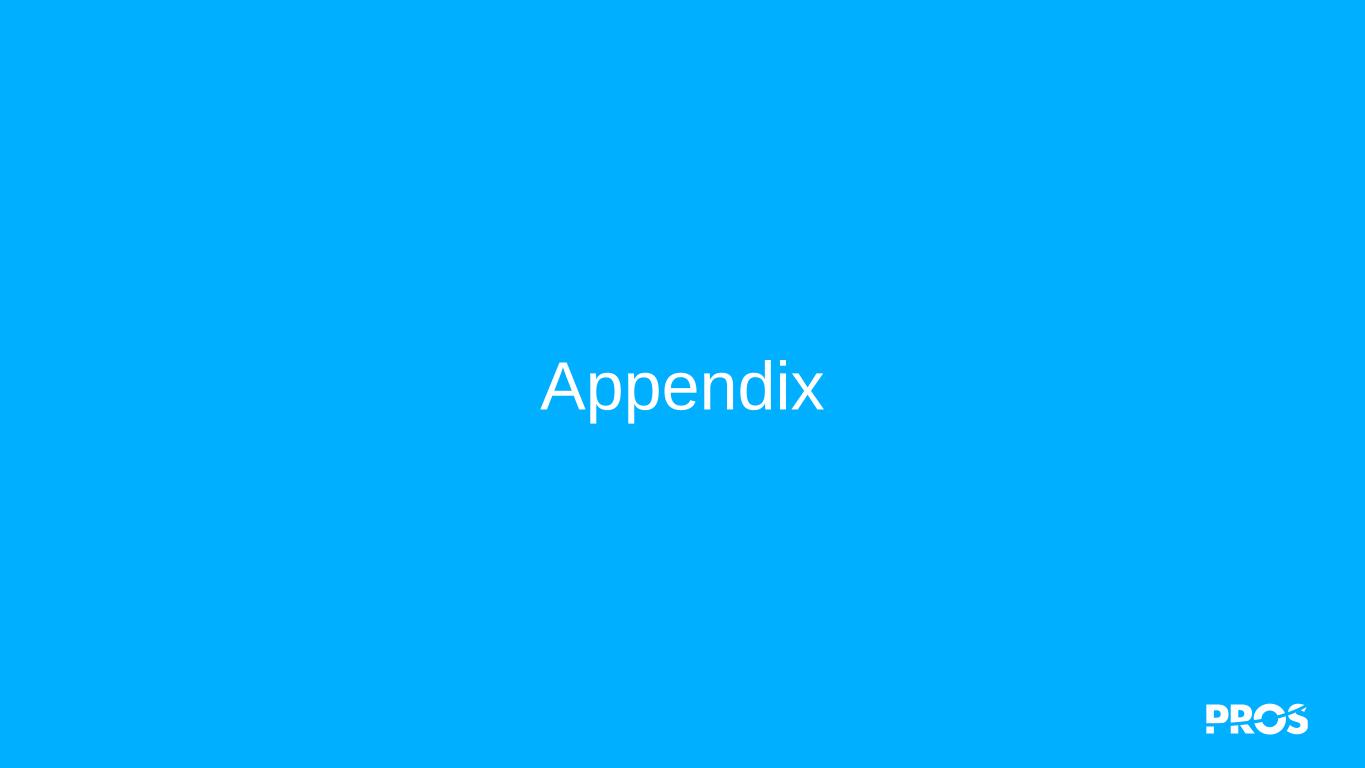 ©2023 PROS, Inc. All rights reserved. Confidential and Proprietary page 11 Our Library of AI Models and Techniques Can Be Ensembled to Solve High-Value Business Problems PROS AI Business AI (Decision) Internet AI Perceptual AI L e a rn in g P a ra d ig m s , M o d e ls & T o o ls Prescriptive Algorithms • Linear programming • Non-linear programming • Dynamic programming • Integer programming • Reinforcement learning Data Science Techniques • Constraint satisfaction programming • Shapley value (SHAP) • kNN clustering • Extensible AI Recommender System Collaborative Filtering Human-Computer Interaction ChatGPT (Azure OpenAI) Predictive Algorithms • Neural networks • FF Wide & Deep • NN Matrix Factorization • Online Learning (Bayesian & Variational Inference) • Decision Trees • Semi-parametric Estimation • Parametric estimation B u s in e s s P ro b le m s Revenue / Margin • Negotiated Price Optimization • Ecommerce Price Optimization • EMSR (Expected Marginal Seat Revenue) • O&D, Leg & Segment-based Optimization Cost • Inventory Control + Optimization • Capacity Aware Optimization • Forecasting • Cost Optimization Profit Optimization Sales Guidance • Offer Optimization • Dynamic Pricing of Ancillaries • Cross-Sell / Upsell Recommendation • Churn Prediction • Production Planning • Fleet Acquisition & Disposition • Fleet Distribution • Production Mix Optimization • Procurement Optimization Supply Chain Optimization