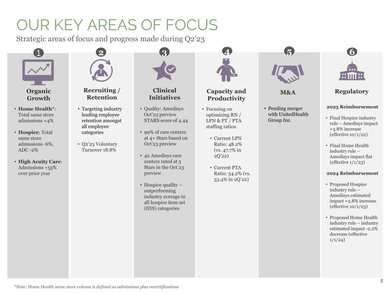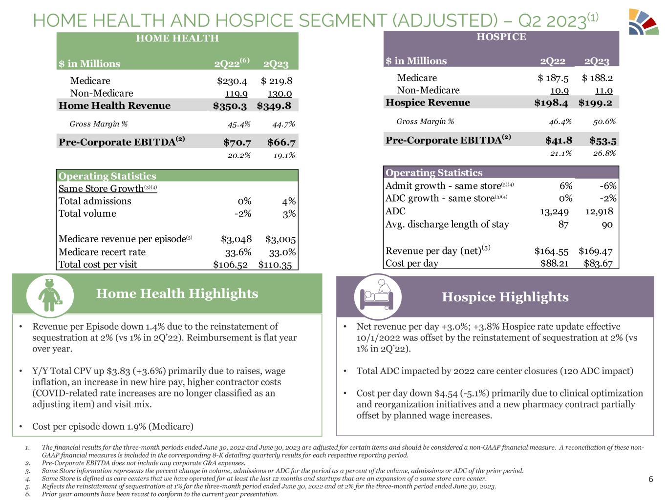 The supplemental slides provided in connection with the second quarter 2023 earnings release can be found on the Investor Relations page of our website. In light of the pending merger of the Company with UnitedHealth Group Incorporated, Amedisys will not conduct a quarterly earnings call to discuss the second quarter results and has decided to suspend guidance on 2023 financial performance.