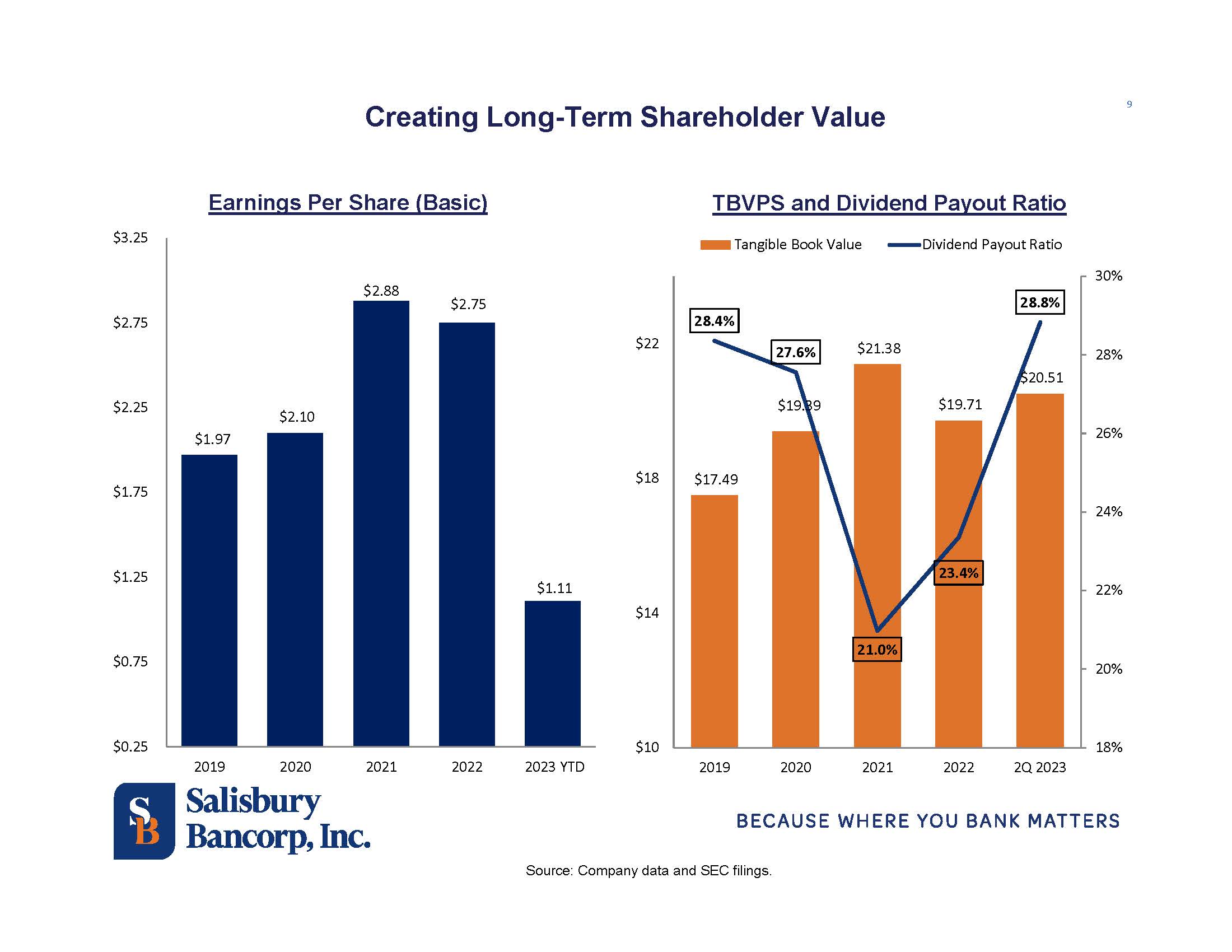 SALISBURY BANCORP, INC. REPORTS RESULTS FOR SECOND QUARTER 2023