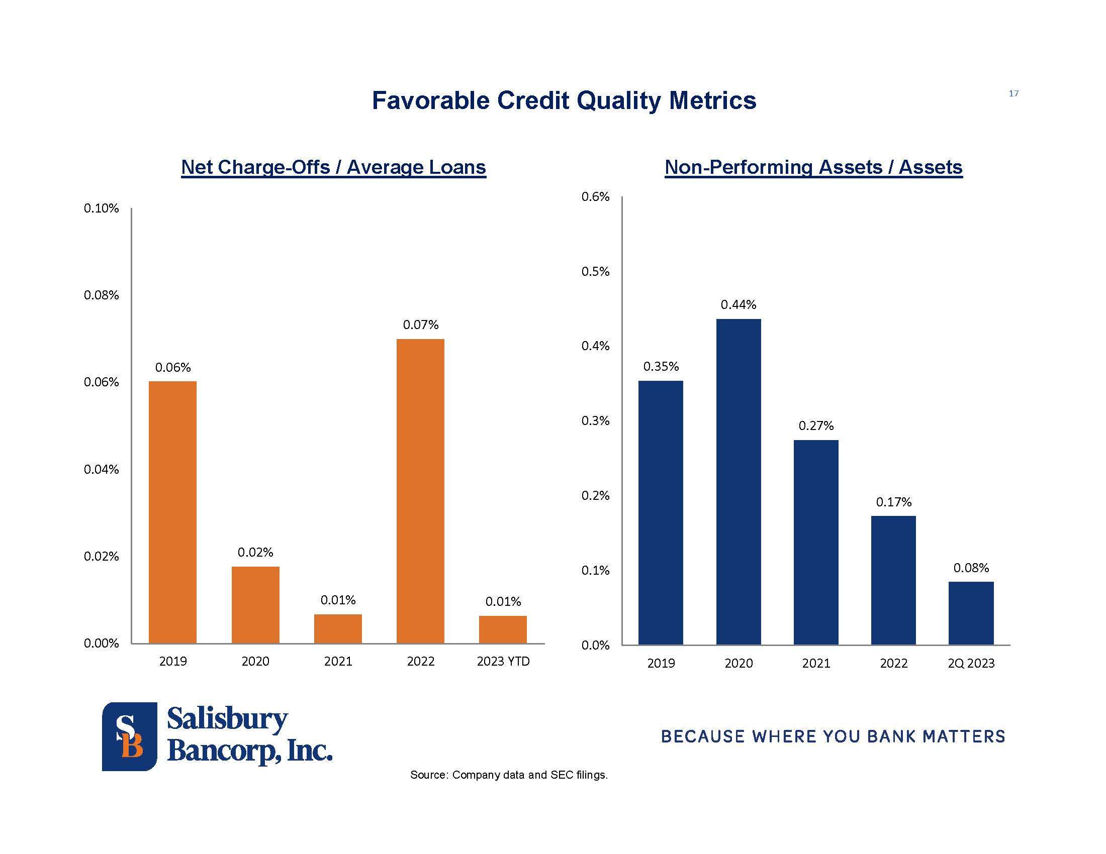 | · | Non-performing Assets were 0.08% of Total Assets at June 30, 2023 |