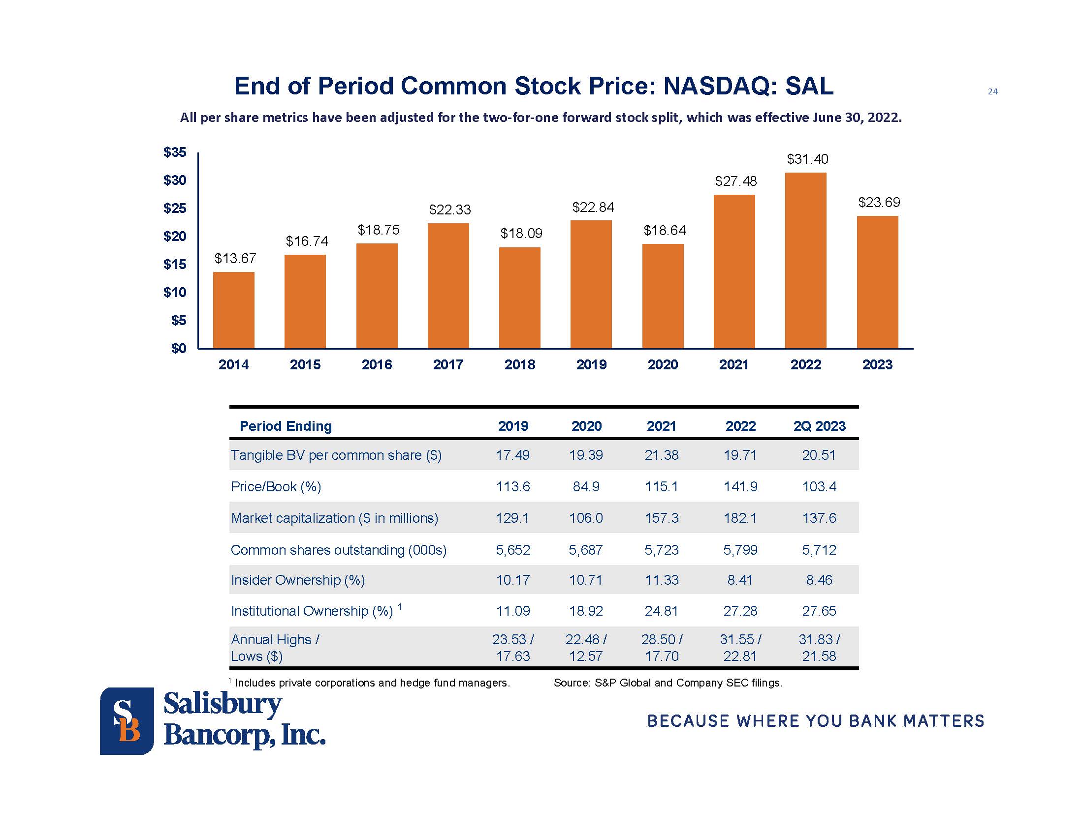 | · | Common Equity Tier 1 and Tangible Common Equity Ratio of 12.41% and 7.71%, Respectively, at June 30, 2023 [1] |