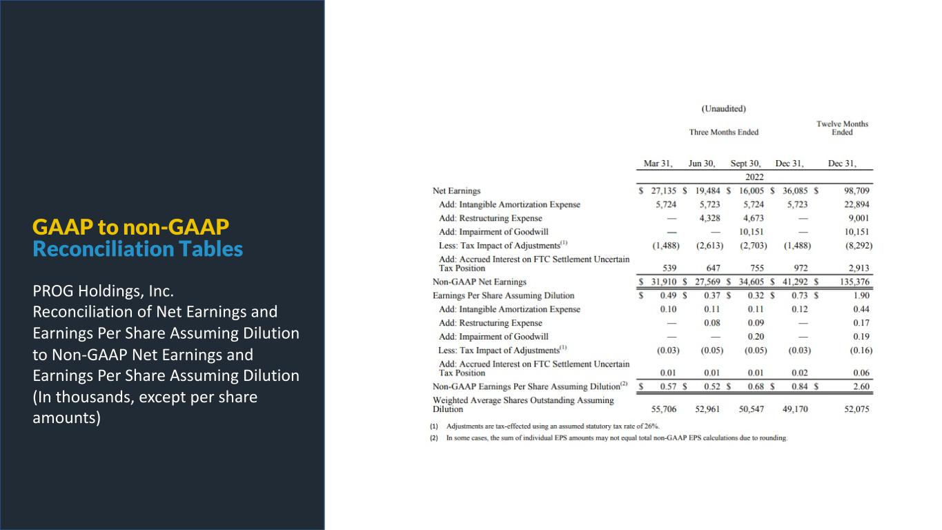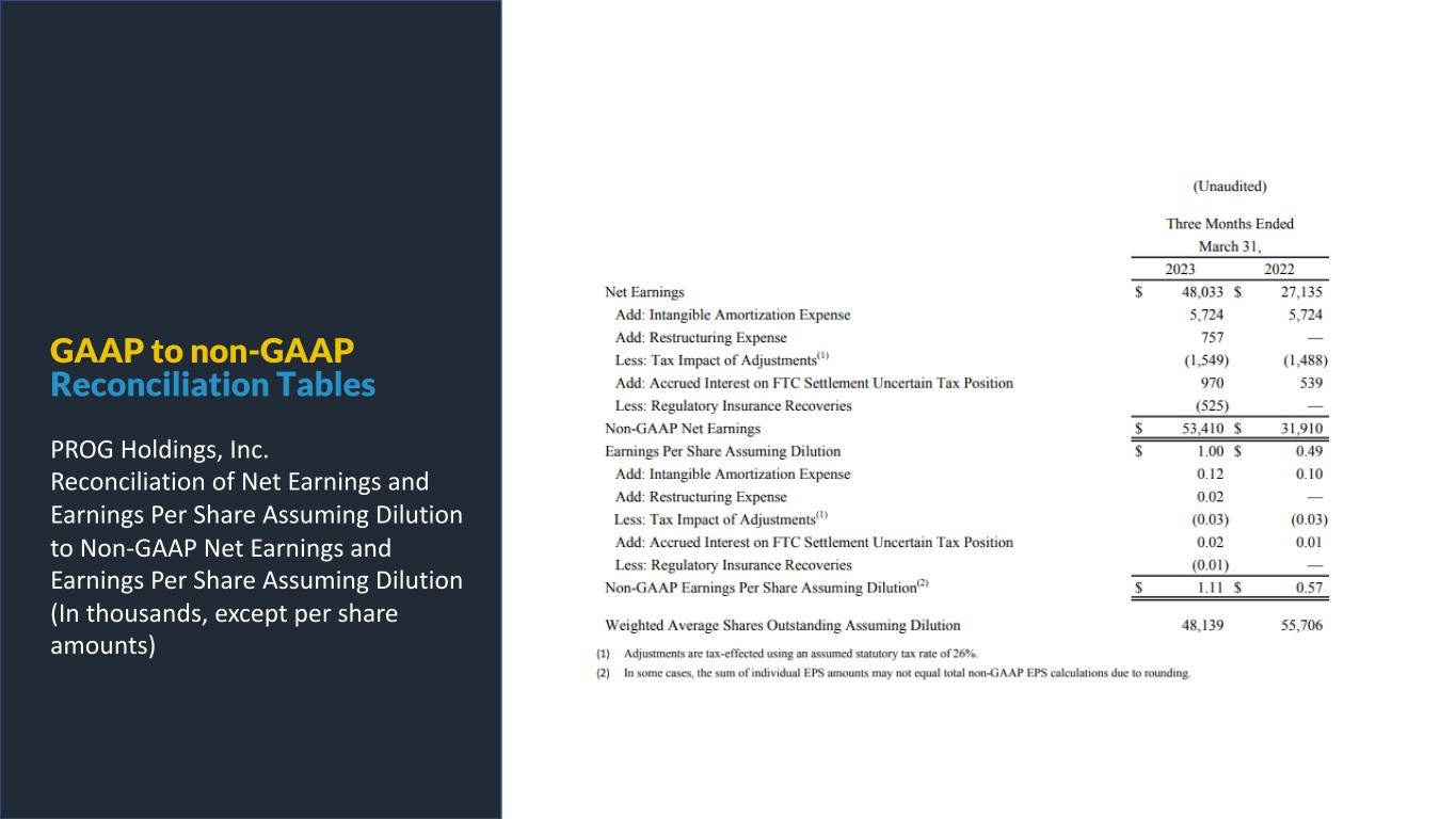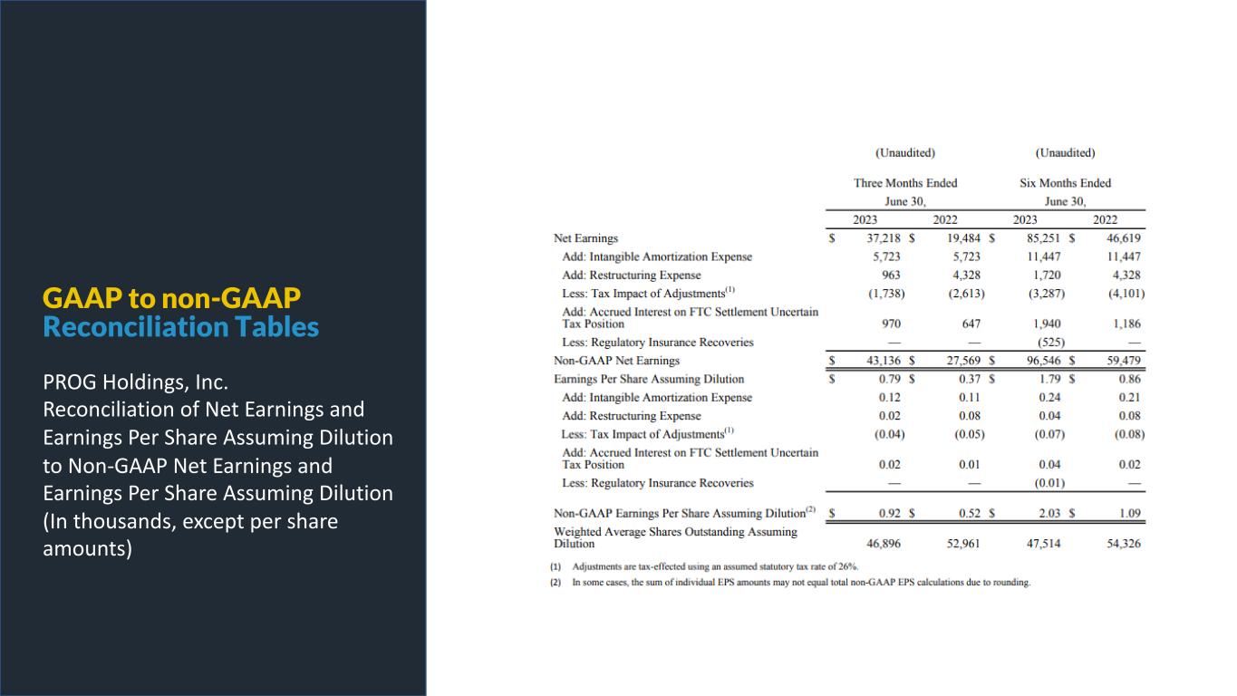 GAAP to non-GAAP Reconciliation Tables PROG Holdings, Inc. Reconciliation of Net Earnings and Earnings Per Share Assuming Dilution to Non-GAAP Net Earnings and Earnings Per Share Assuming Dilution (In thousands, except per share amounts)