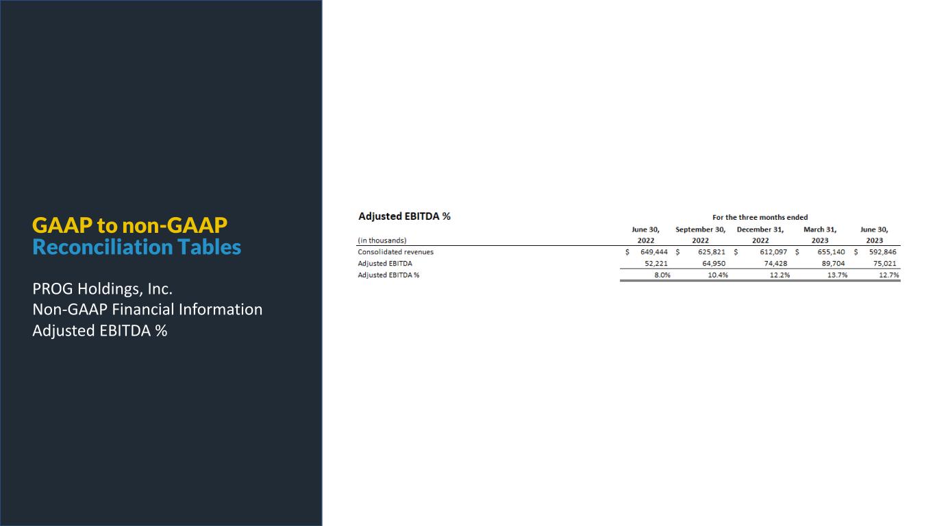 GAAP to non-GAAP Reconciliation Tables PROG Holdings, Inc. Non-GAAP Financial Information Adjusted EBITDA %