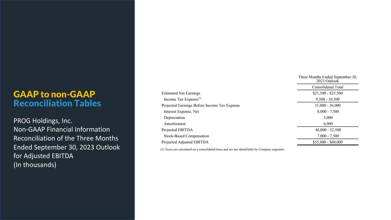 GAAP to non-GAAP Reconciliation Tables PROG Holdings, Inc. Non-GAAP Financial Information Reconciliation of the Three Months Ended September 30, 2023 Outlook for Adjusted EBITDA (In thousands)